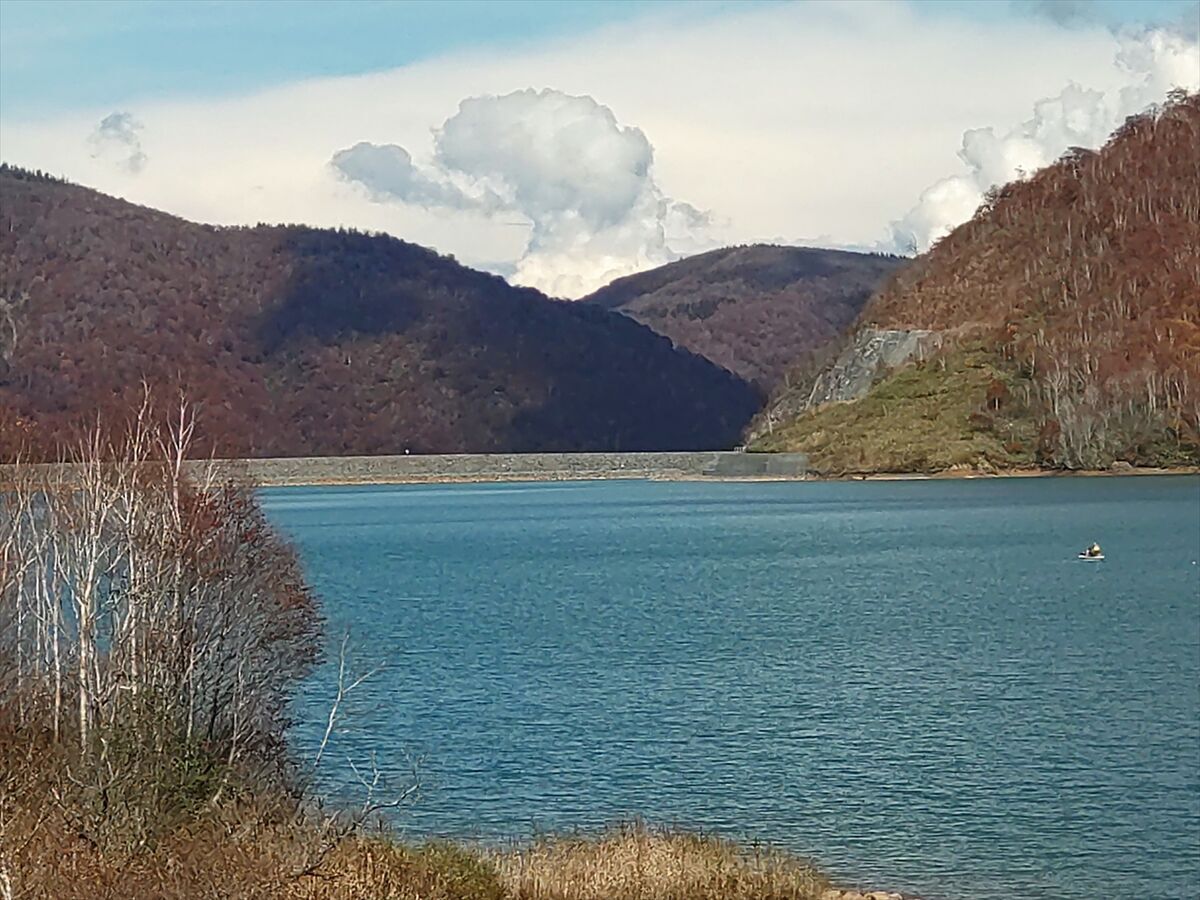 二居ダムと二居湖が見えてきました。