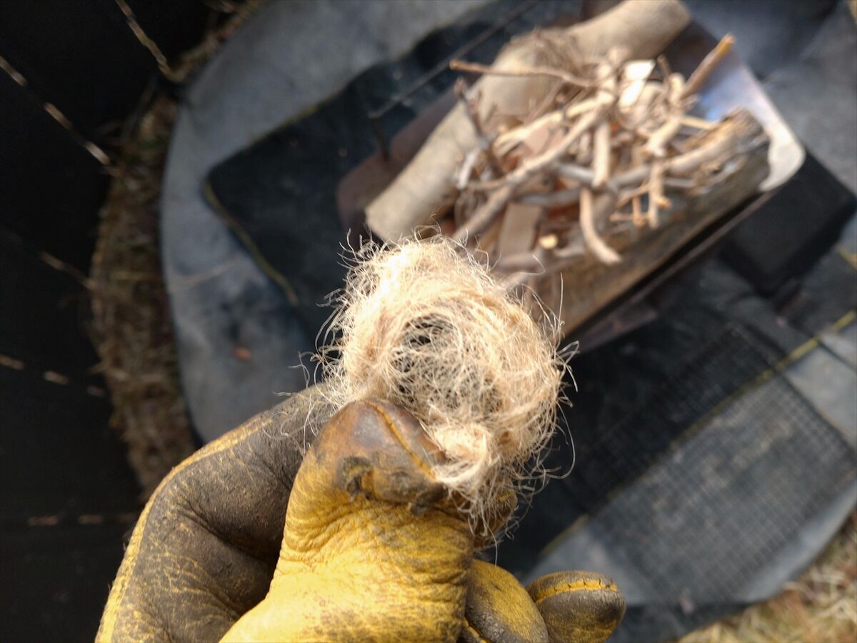 麻もほどくのが面倒でほんの少しだけですが十分焚火に着火出来ました(^^)
