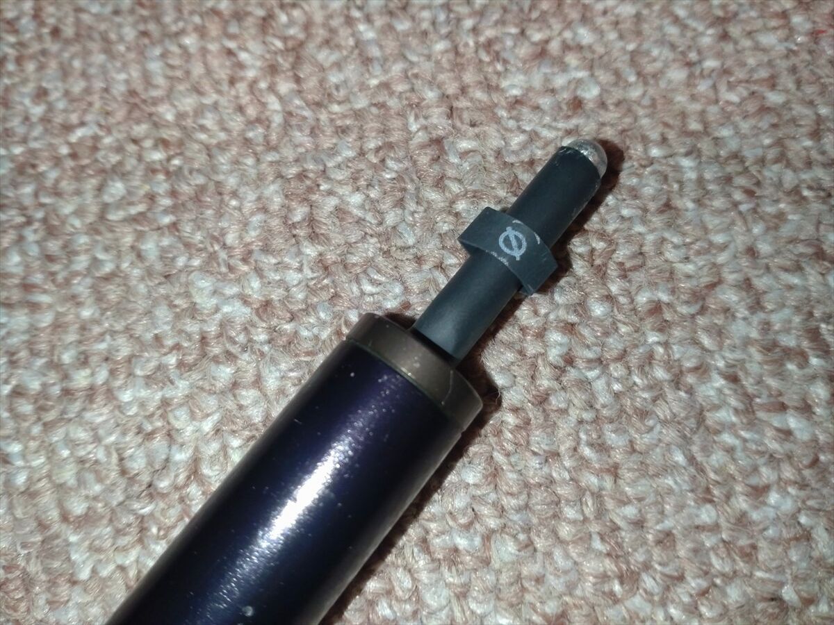 最初は先だけ太くスティックを盛り上げて着けてみましたが、キャップを外す時にすぐに取れてしまいました(^^;