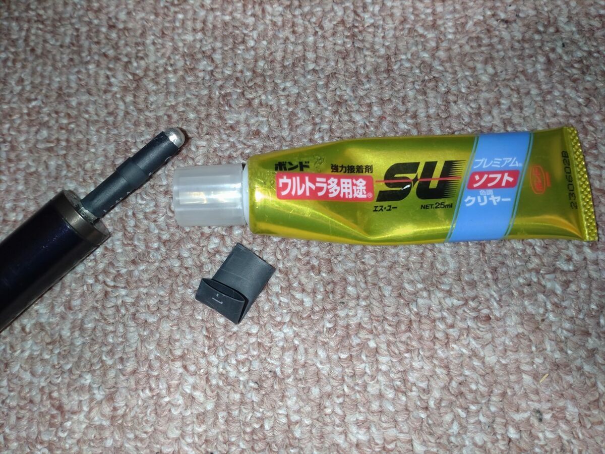 レバーに接着剤を塗って樹脂キャップをハメます。