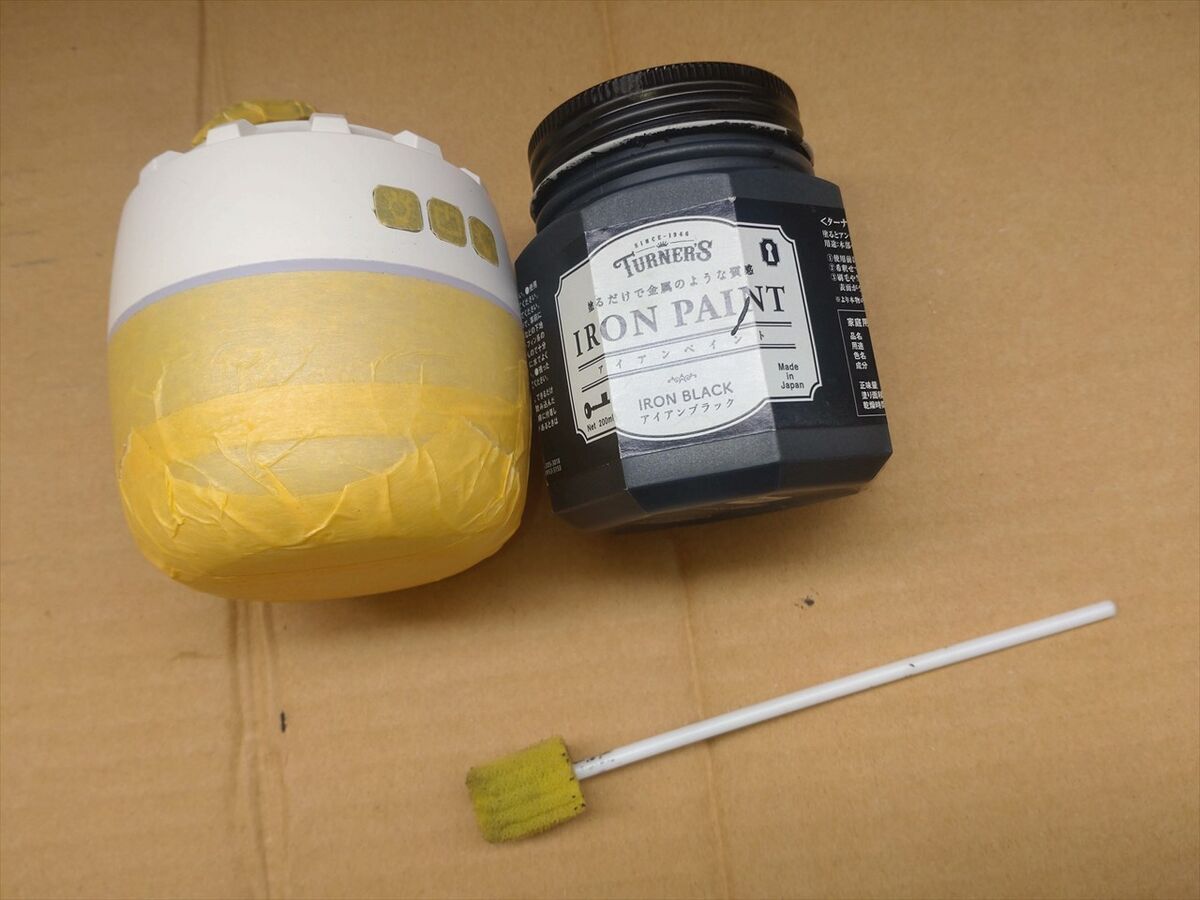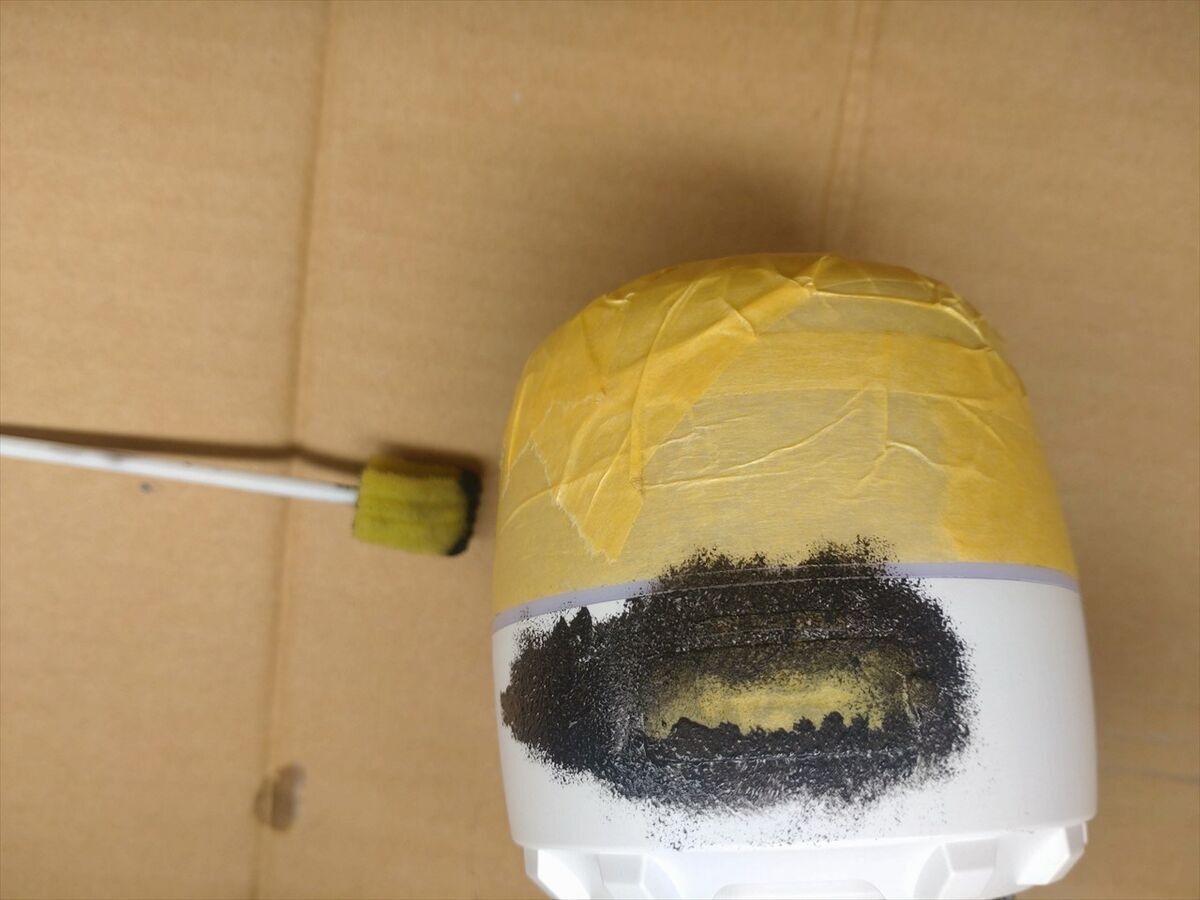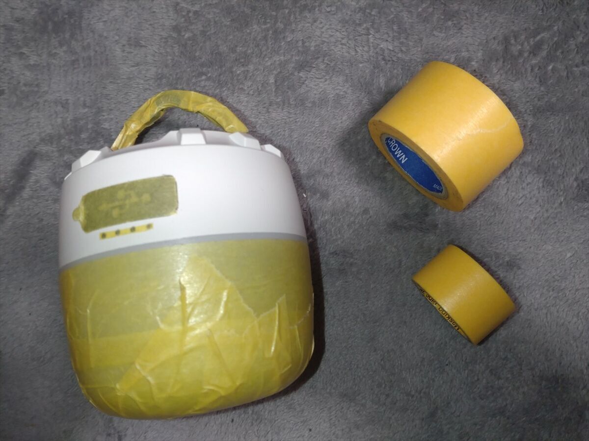 このランタンは同じモノを以前も使っていて、その時も濡れて壊れたので、隙間にテープを貼った上に本体を塗装したのですが。