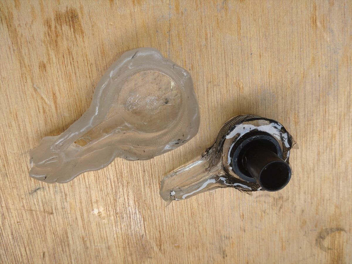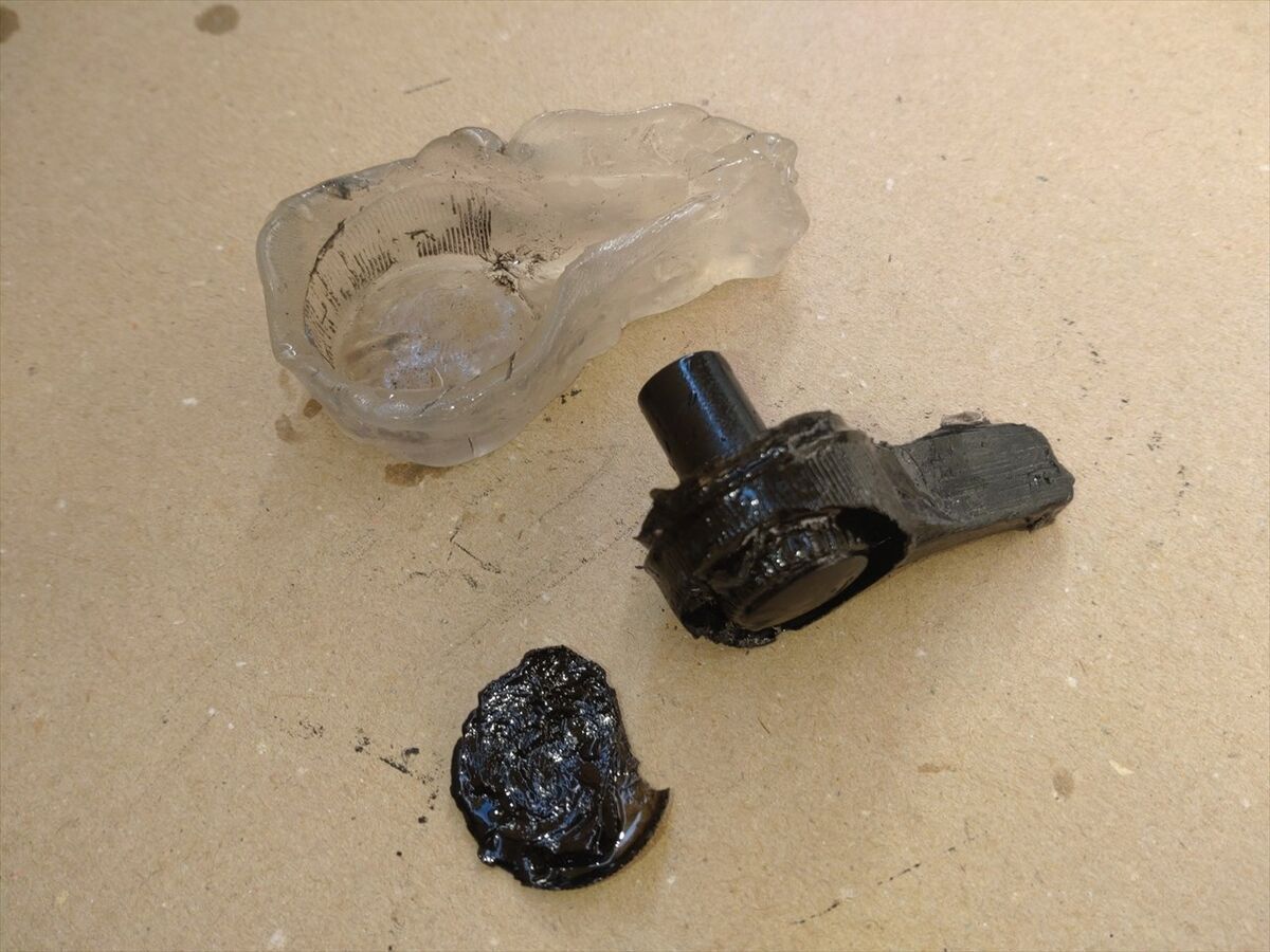 型を外しバリを取ったりサンドペーパーで整形していると、中から固まっていない樹脂が出てきます(^^;