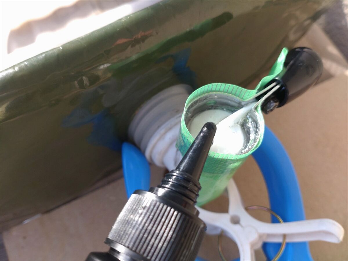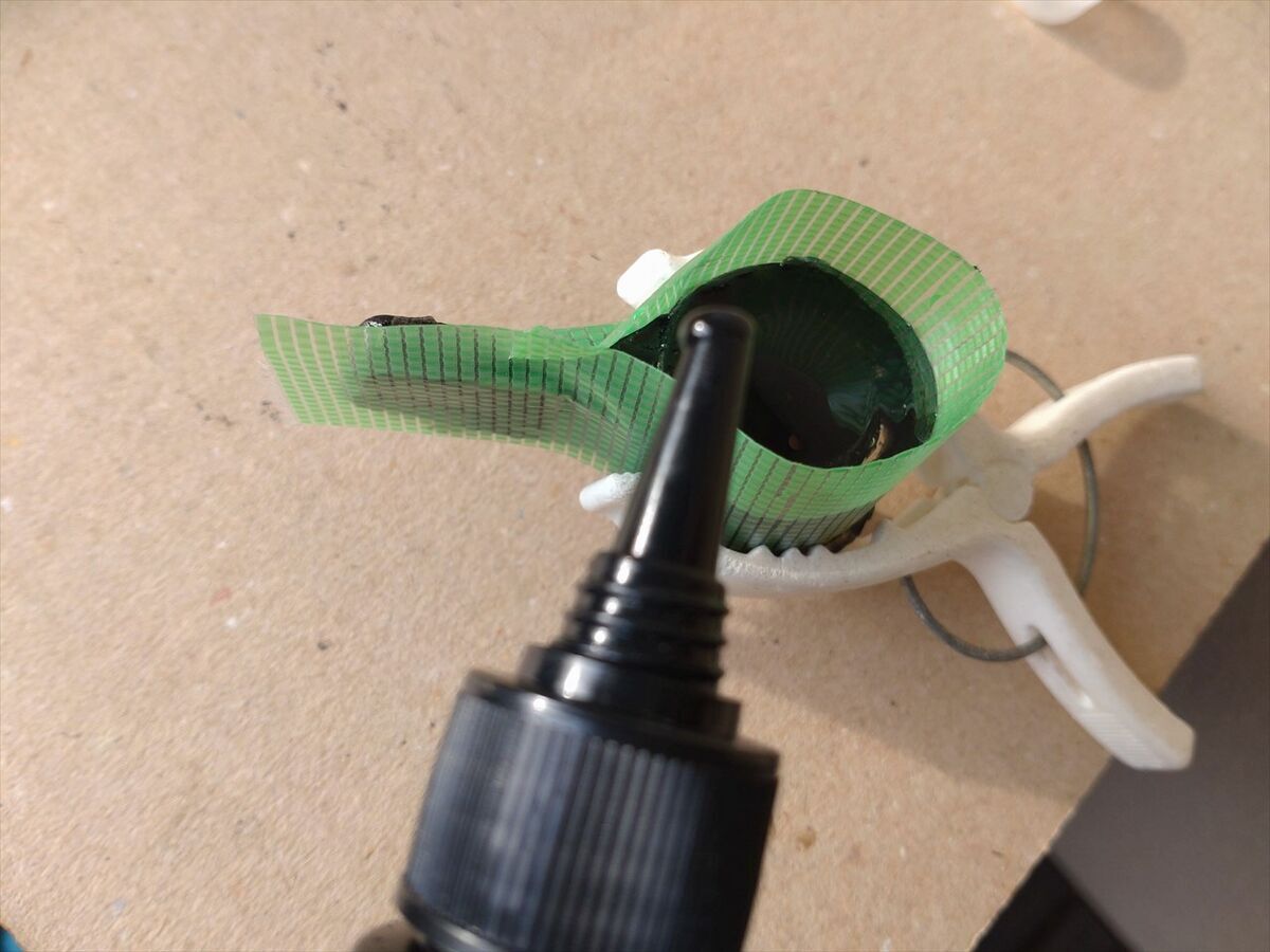 締め付けだけでは固定が弱い感じなのでレジンを流し込んでみました。