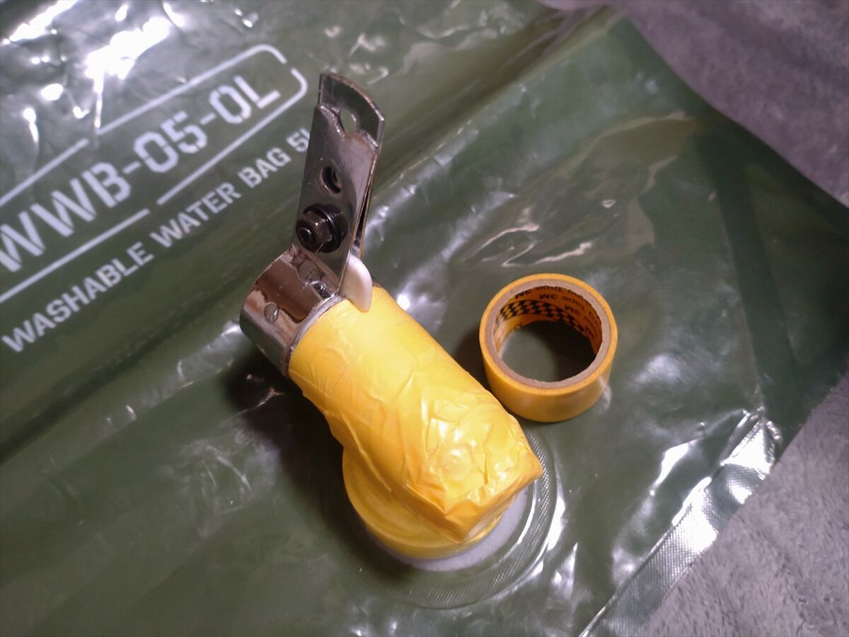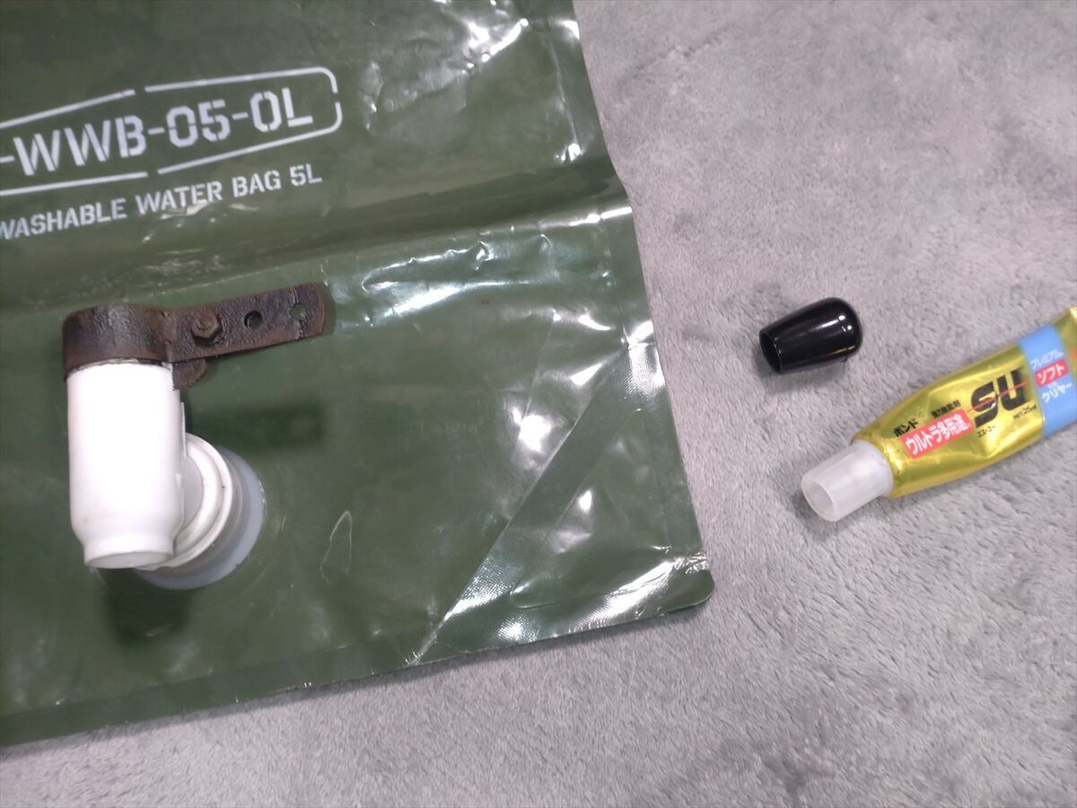 ウォーターバックのコックを回すと水が出るようになっていますが、コック部分が小さくて重く回しにくいのです(^^;