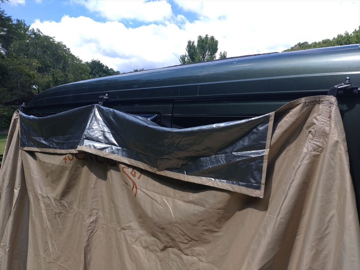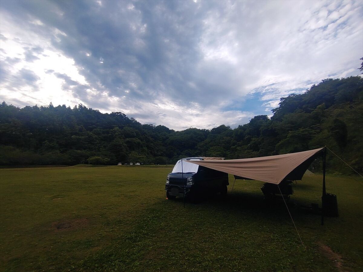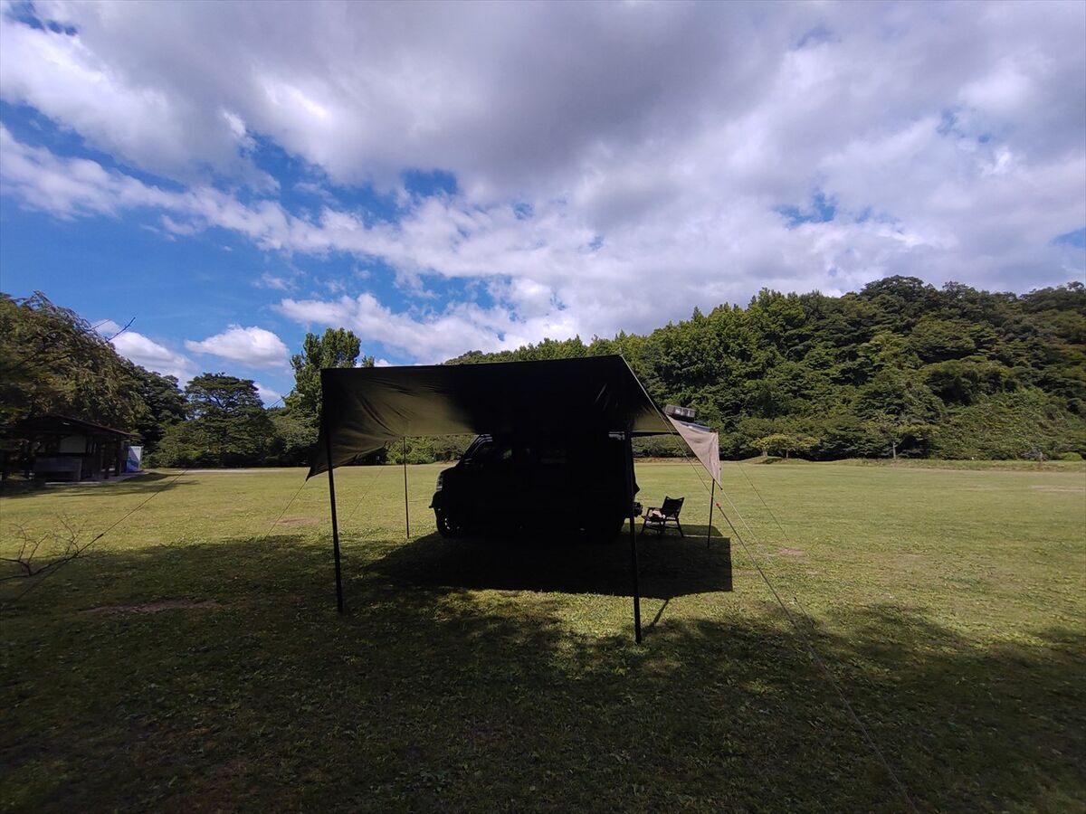 梅雨入り間近で雨も降りそうですが、自作したばかりのエブリイ専用オリジナルカーサイドタープVer.2を試すにはぴったりの天気です(^^)