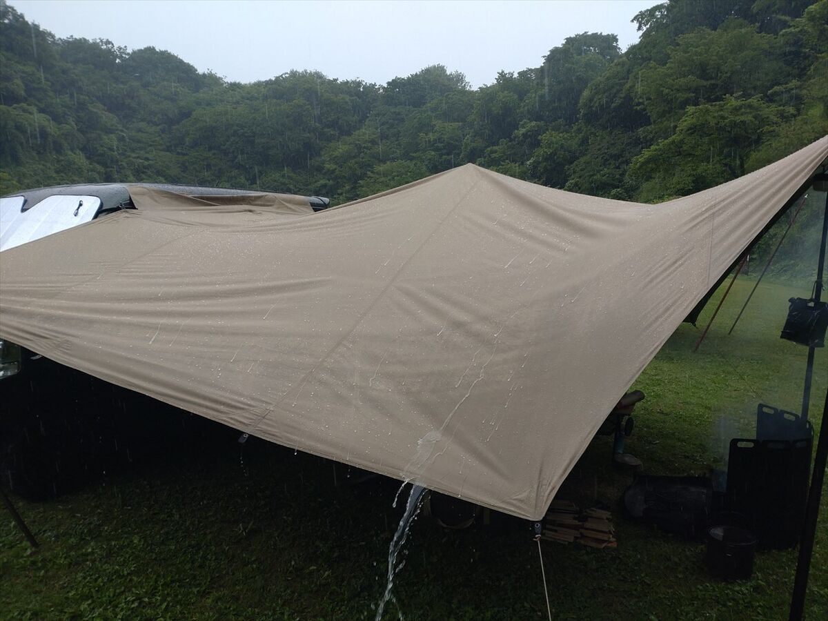 雨は止みそうにないですね。自作タープを試すには丁度良いのですが被害も出ている所がありそうですね(^^;