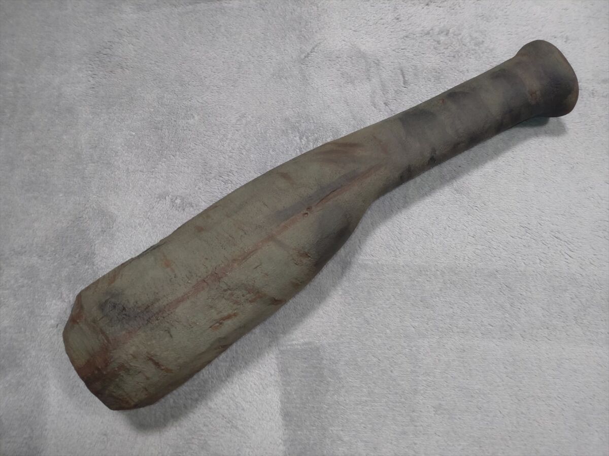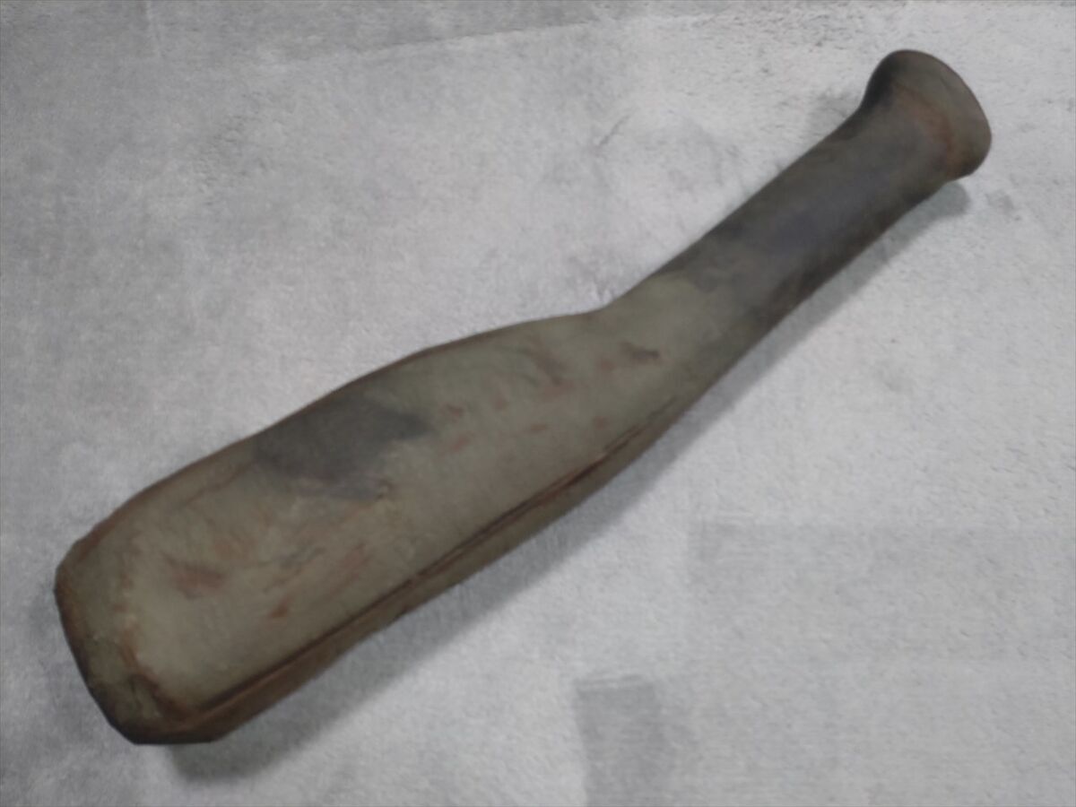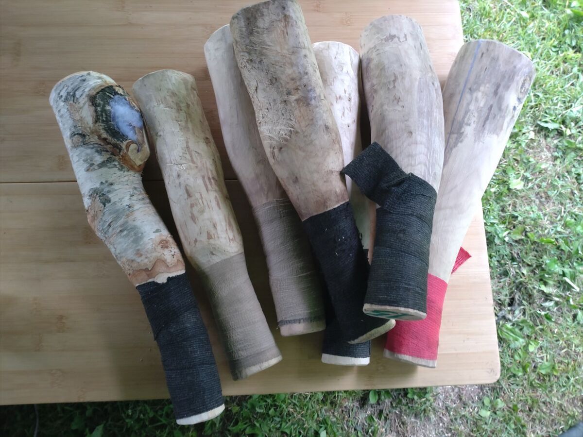 グリップ部分を長めに削り前を持つと軽く打てて、根元の方を持つと思いっきり力を込めて叩けるように持つ所を長く削りました。