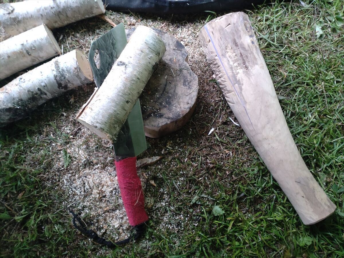 これまでペグハンマーで割っていましたが、試しに友人が作ったバトンニング棒を使ってみると、長くて重く思っていたより力も良く入り薪も割り易い事がわかりました(^^)
