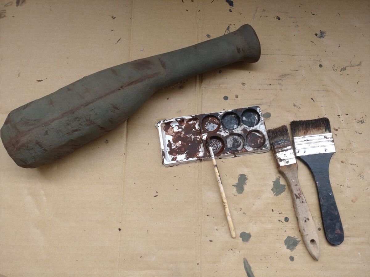 持つ部分などに多めに塗装を塗ってはブラシで擦ってぼかしています。