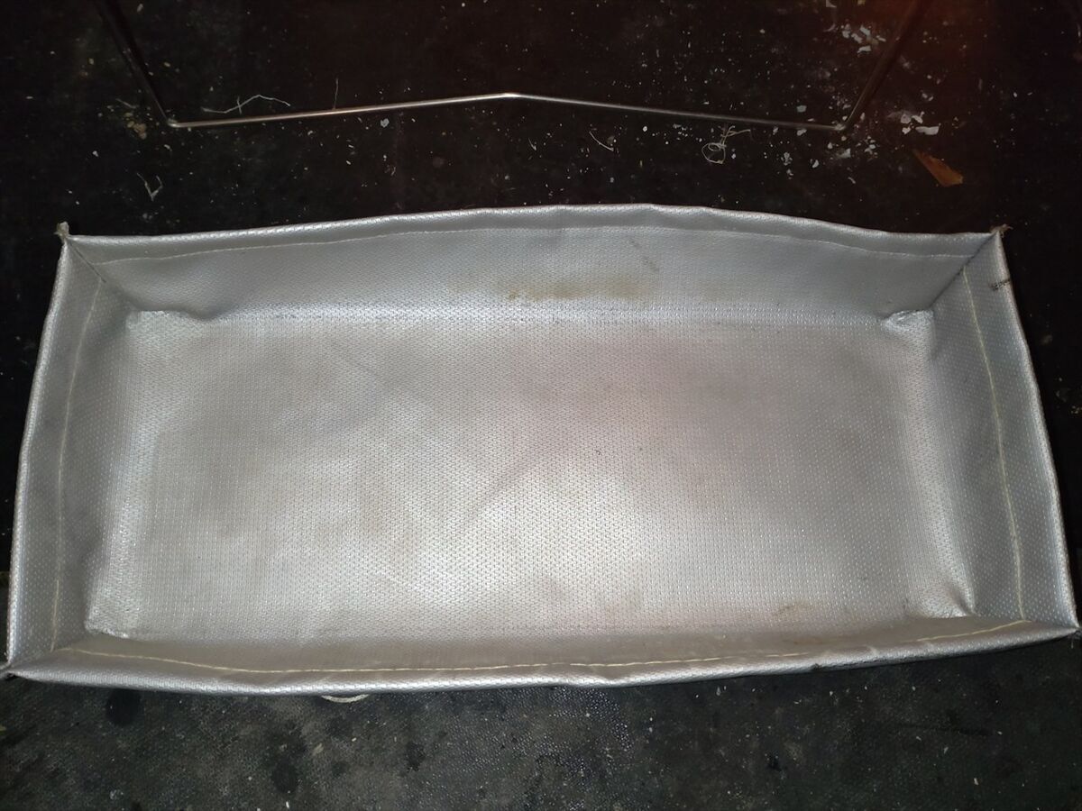 焚火台の幅に合うように縫ったつもりが、下の角は縫う向きを間違えています(^^;