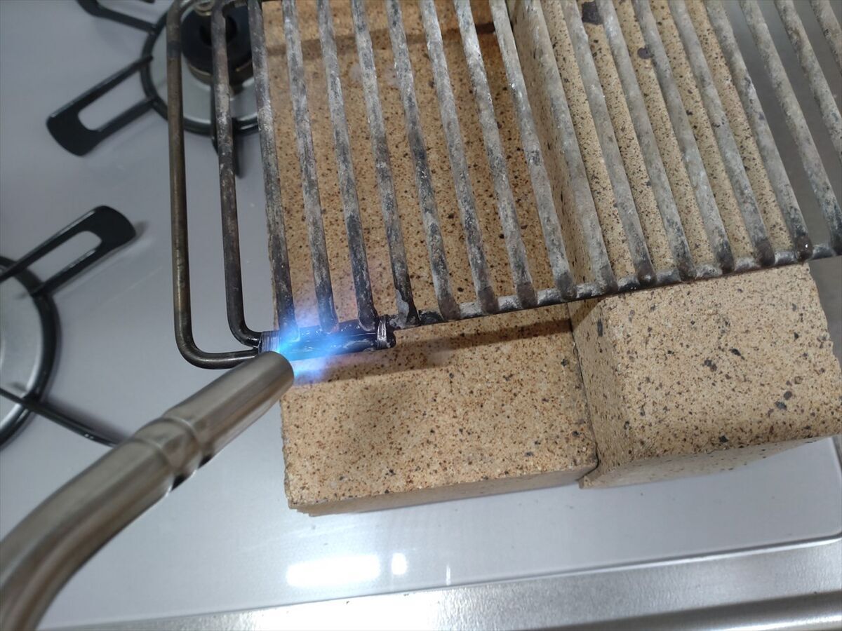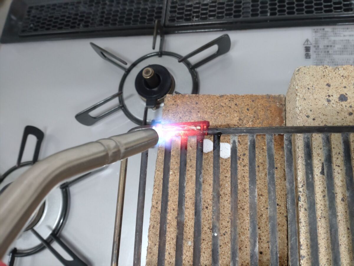 ガスコンロの火で炙るのと違いピンスポットで加熱出来て作業が早いですね(^^)