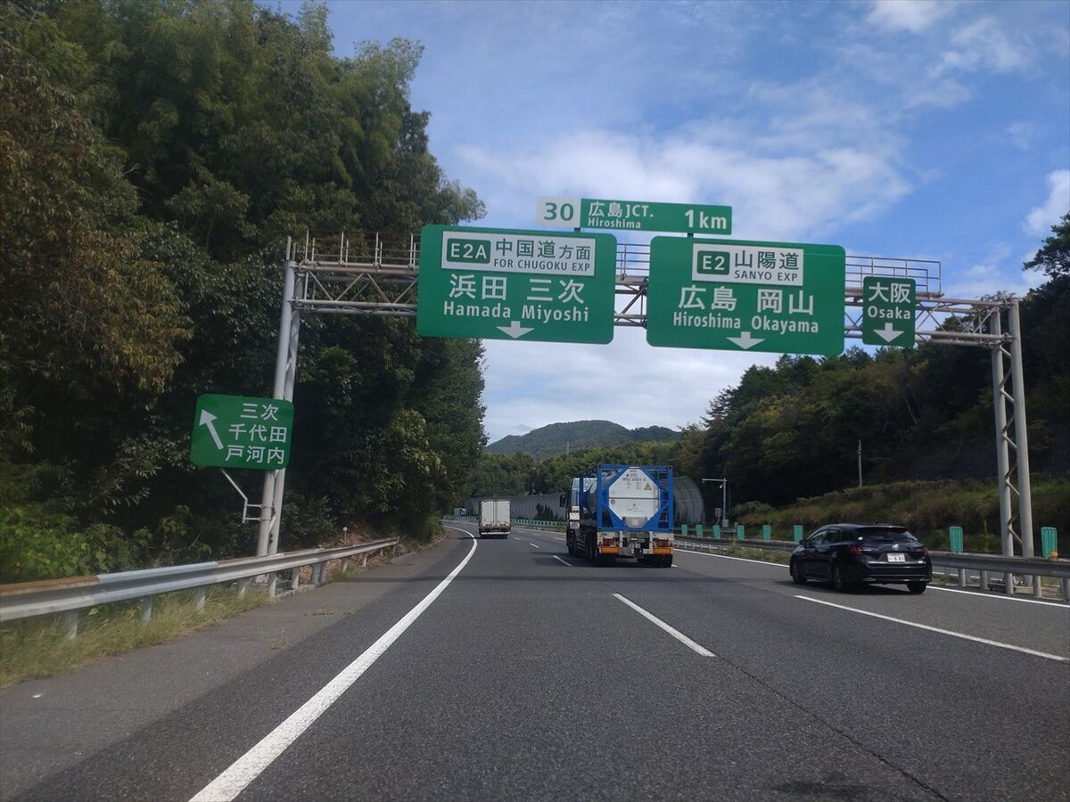 松江道、尾道道の分岐がまもなくです。中国道を直進します。
