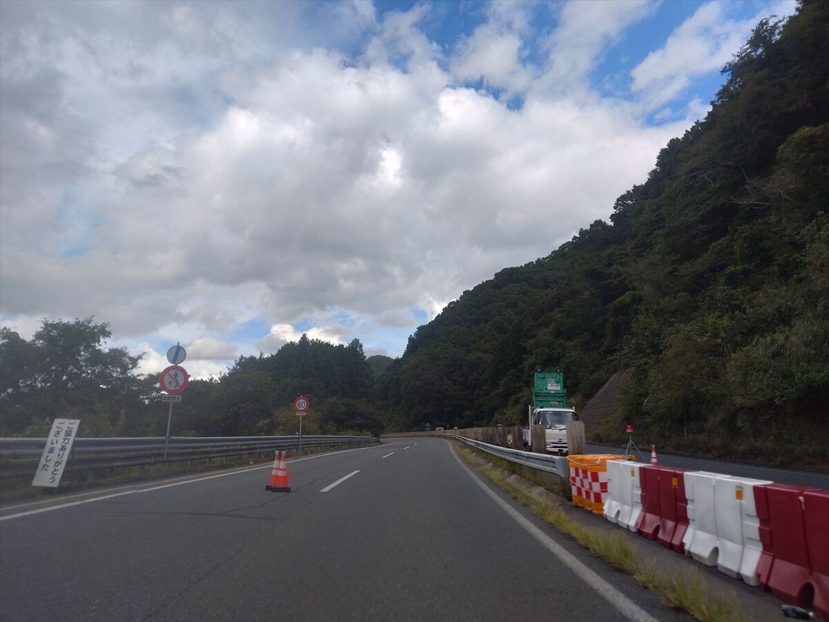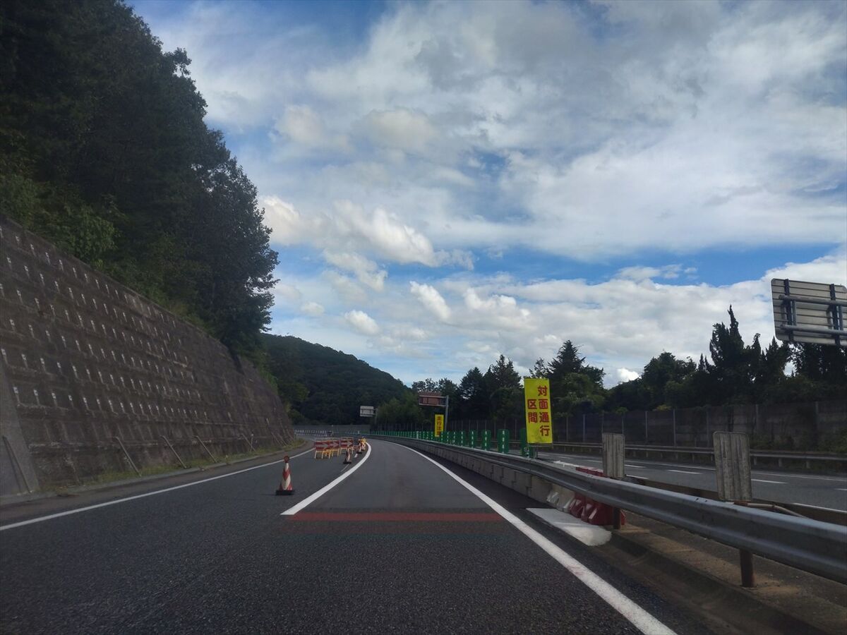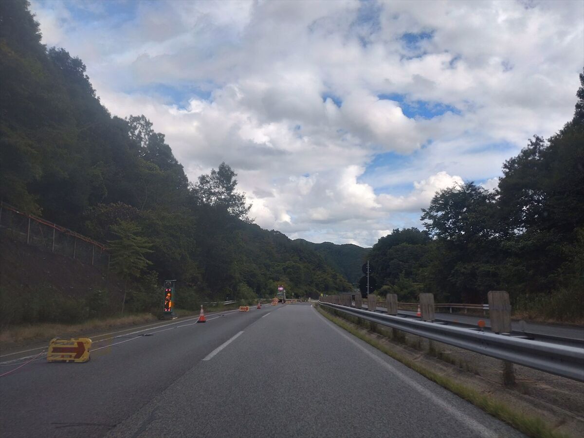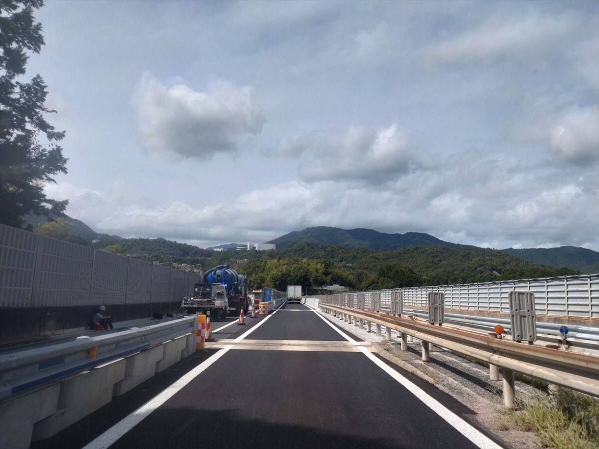 中国道はリニューアル工事が行われていて各所で車線制限や対面通行区間があります。