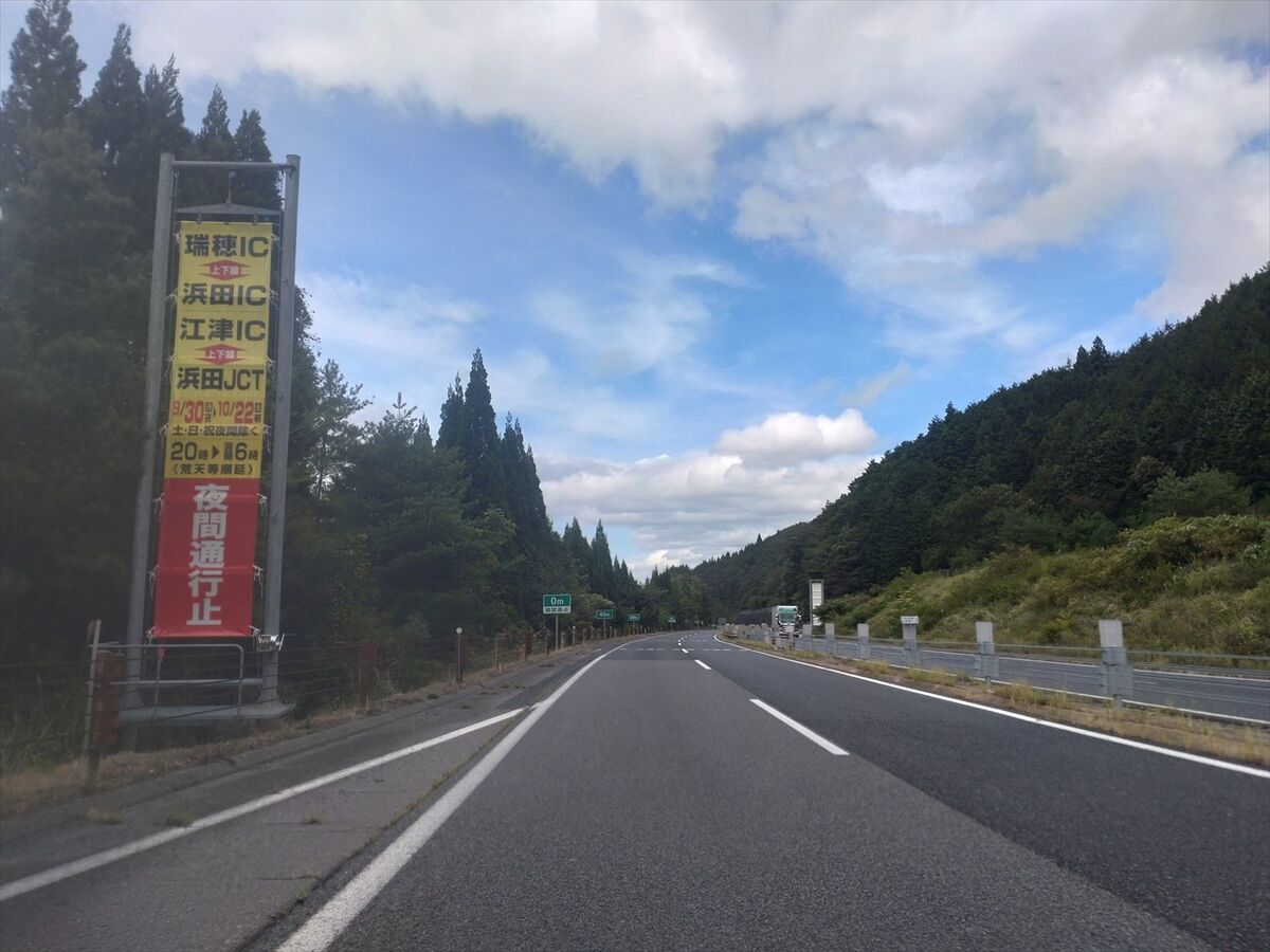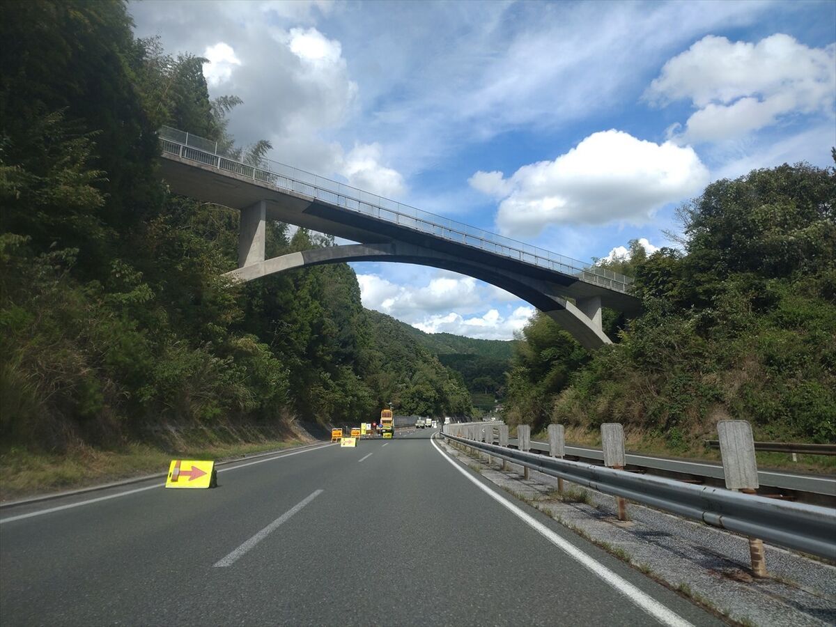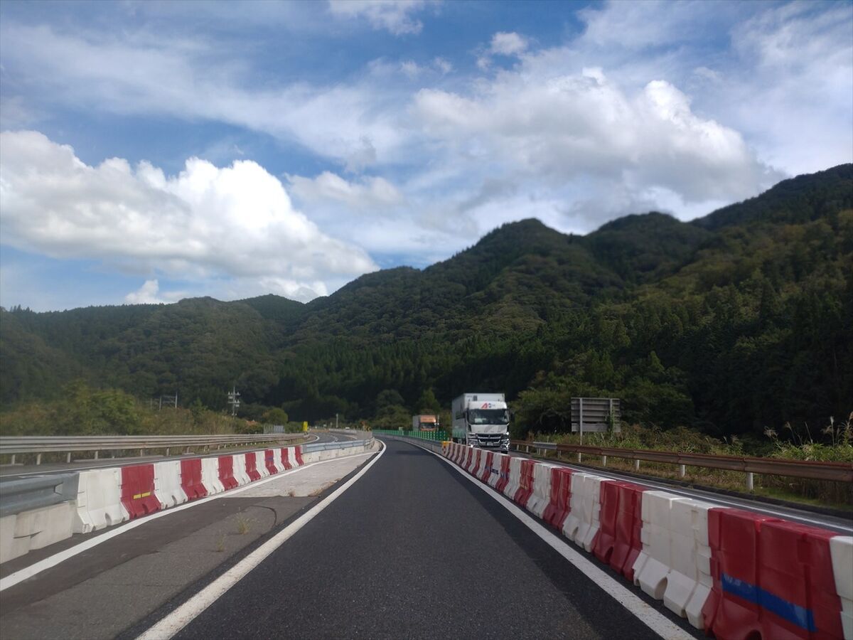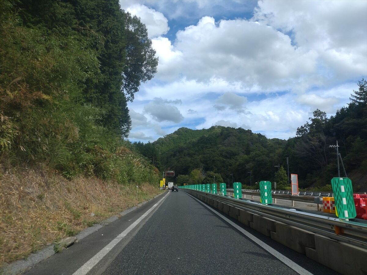中国道はリニューアル工事が行われていて各所で車線制限や対面通行区間があります。
