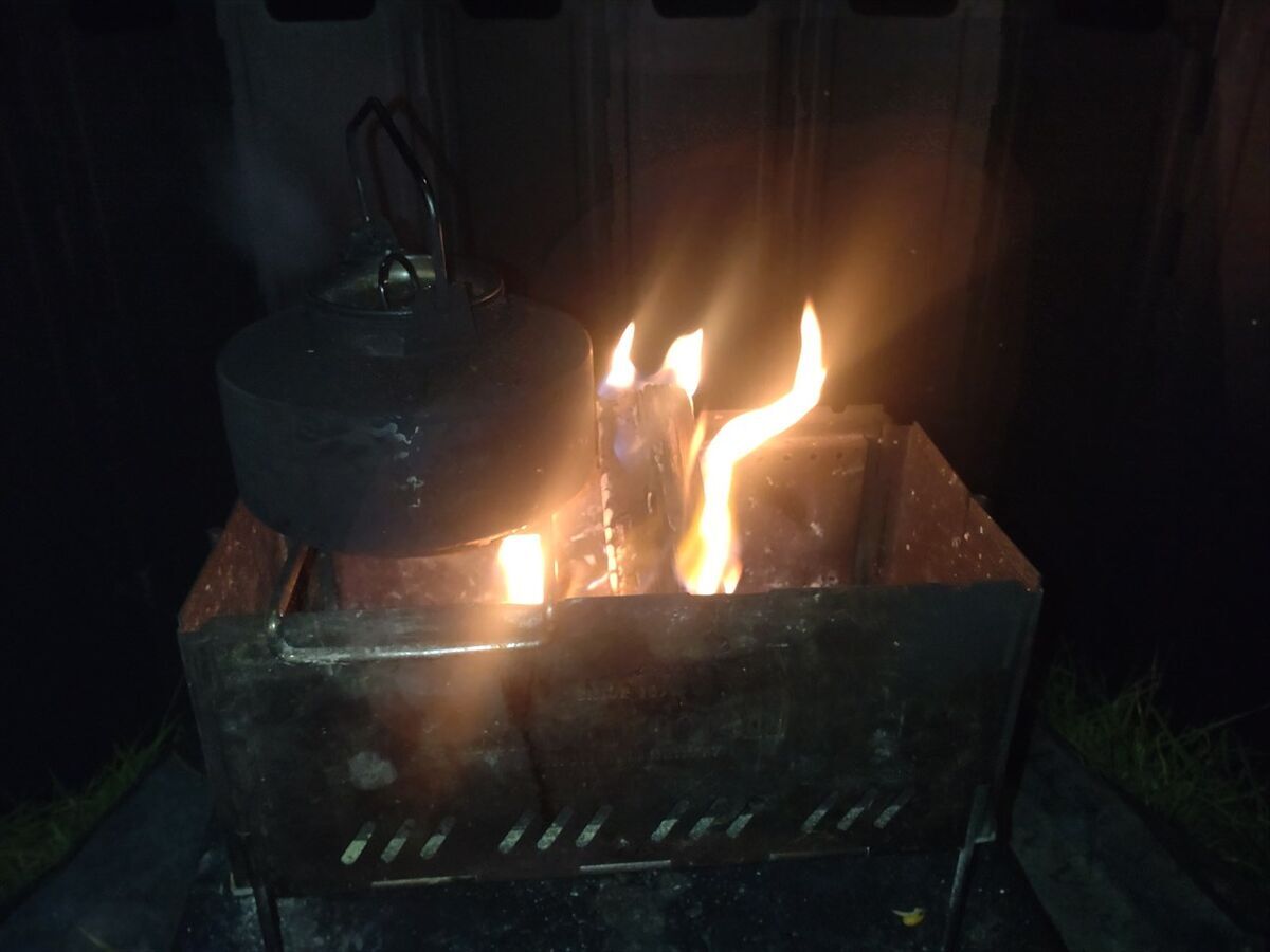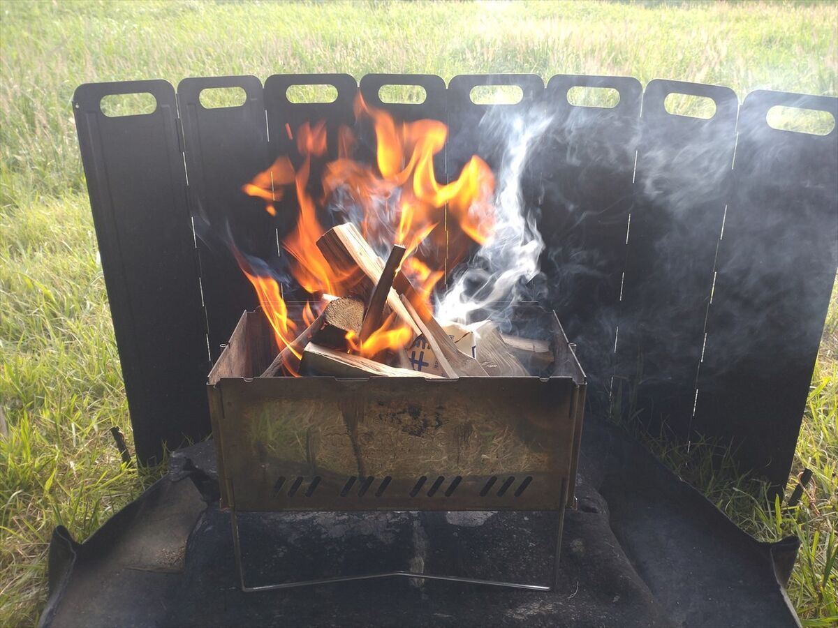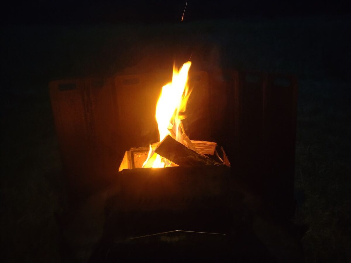 無事焚き火が起きました。昨日と打って変わってこの時間帯には半袖では寒くなりました。