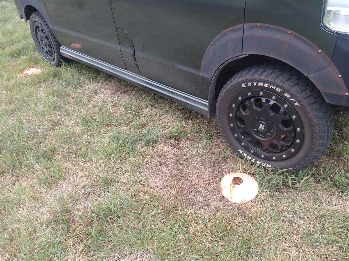 車体の傾き調整に敷いていた薪2本も回収です(^^)