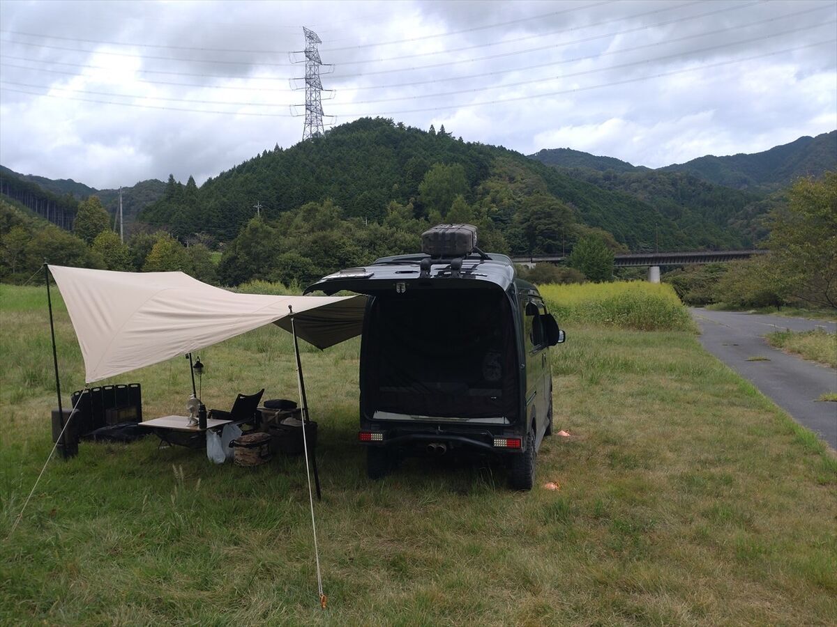今日はSUPか何かのイベントがあるのか、手前の駐車場や隣の広場に多くの車や人が来られていてにぎわっていますが、自分が設営して周りには誰もいません(笑)