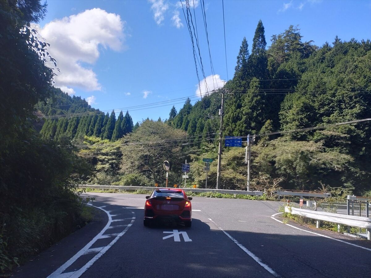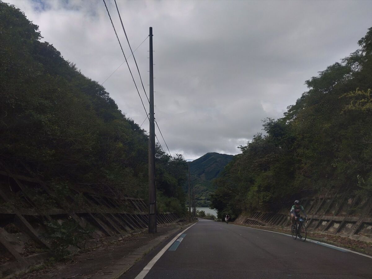 この道も昨日のサイクリングイベントのロングコースの一部で温泉で折り返すまで延々坂を上って来ることになるのでサイクリストの方達は大変だったことでしょう。