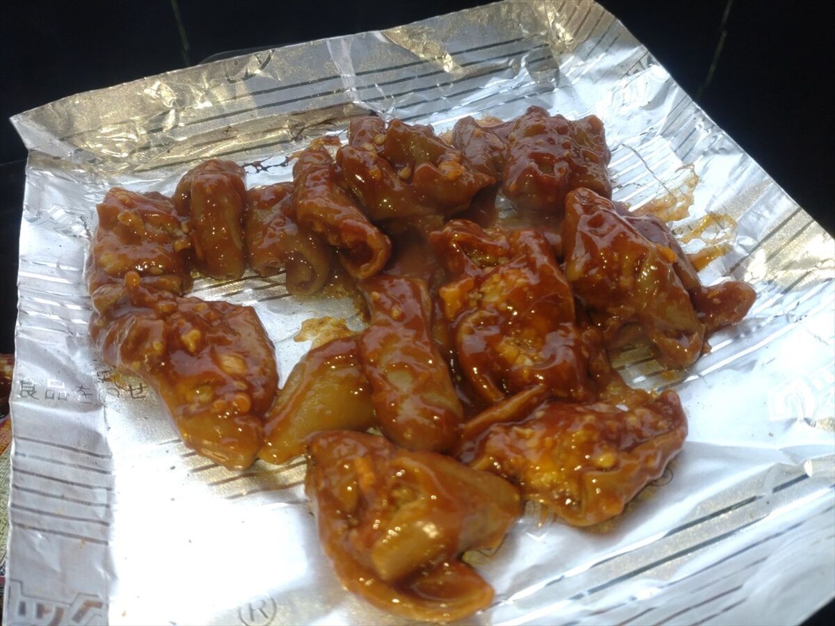 最初は豚ハラミ焼き肉を鉄板で焼きます。