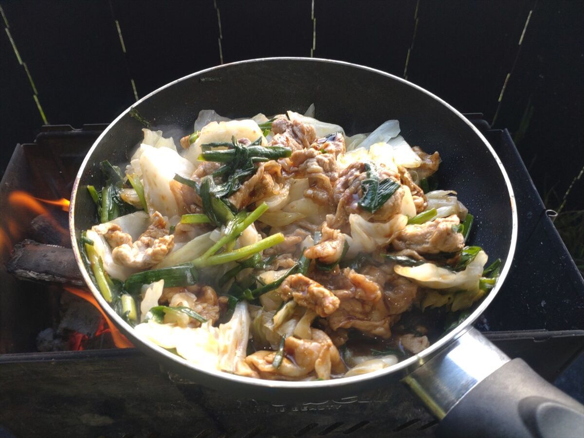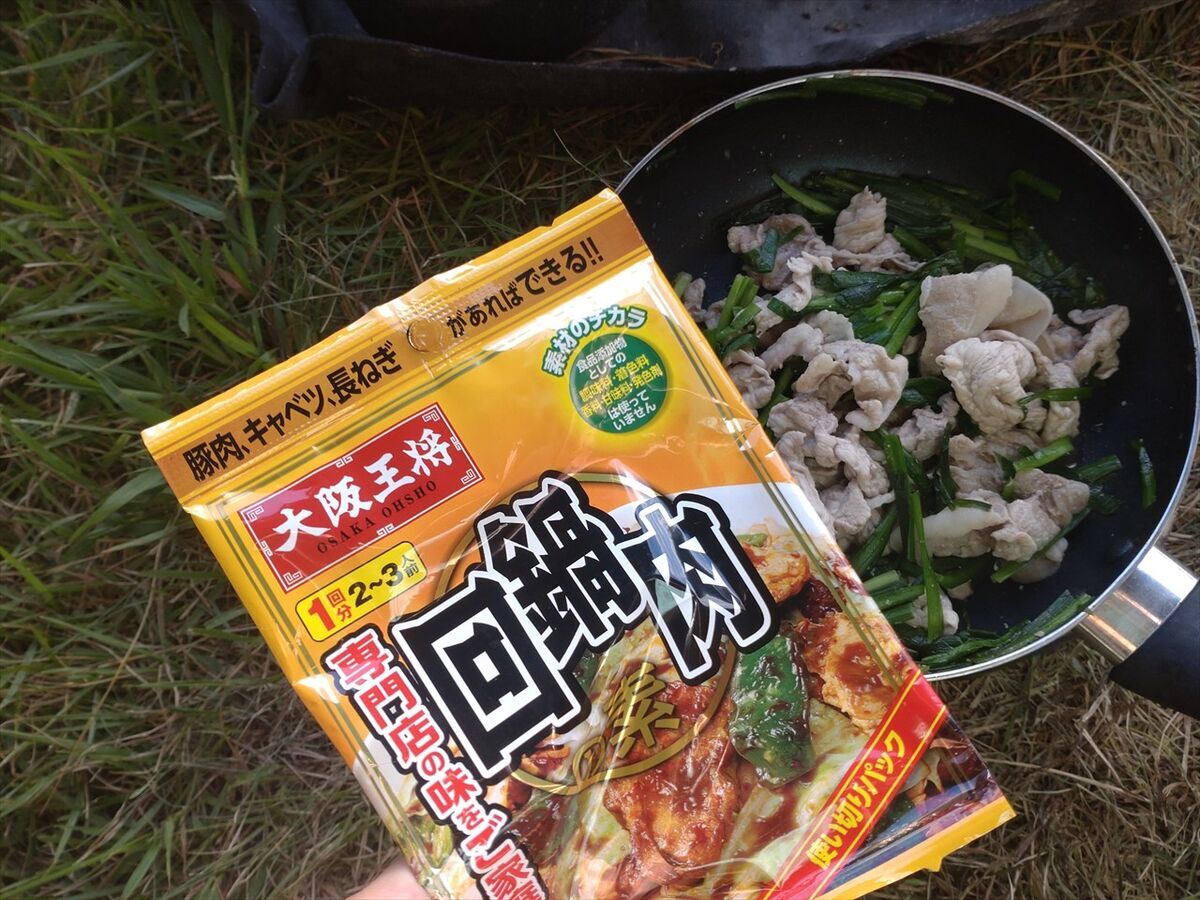 肉に火が通ったらDAISOの大坂王将シリーズの回鍋肉の素を入れてからめます。