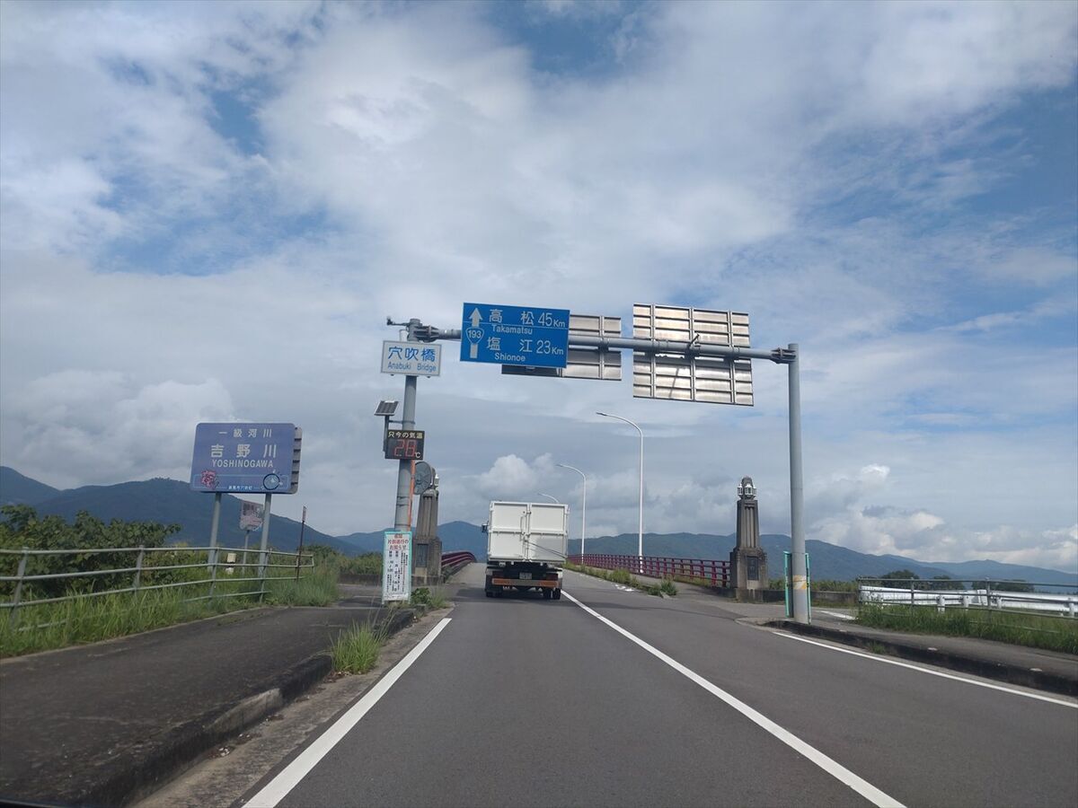 吉野川にかかる穴吹橋を渡り川の北側を東へ進みます。
