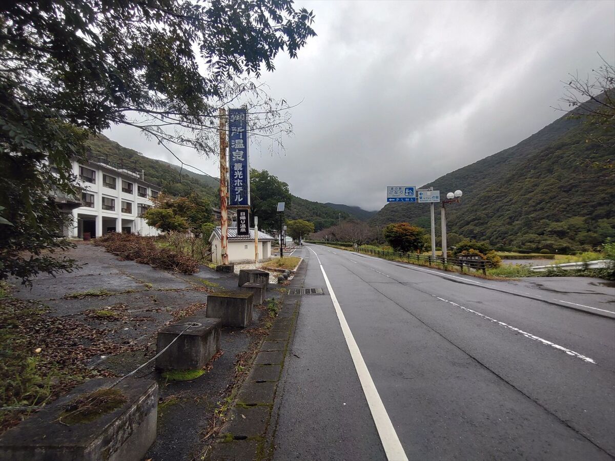 車を宮川公園に移動させましょう。閉鎖されている御所温泉観光ホテル前に宮川内公園に下りていく道の入り口があります。