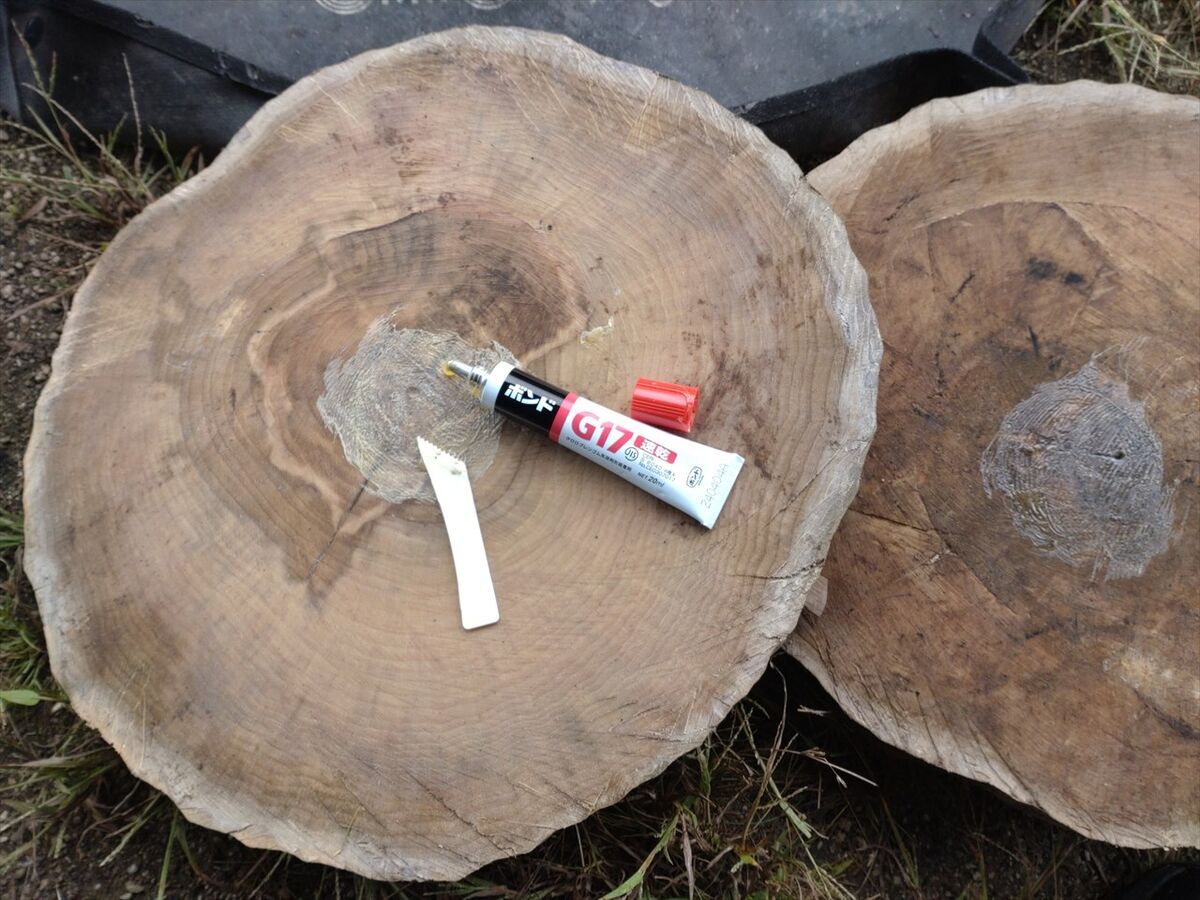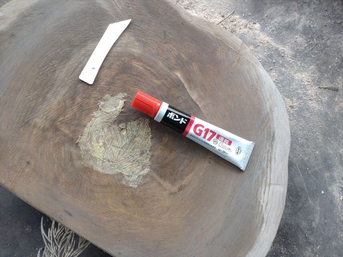 剥げたボンドを塗りなおしておきます。
