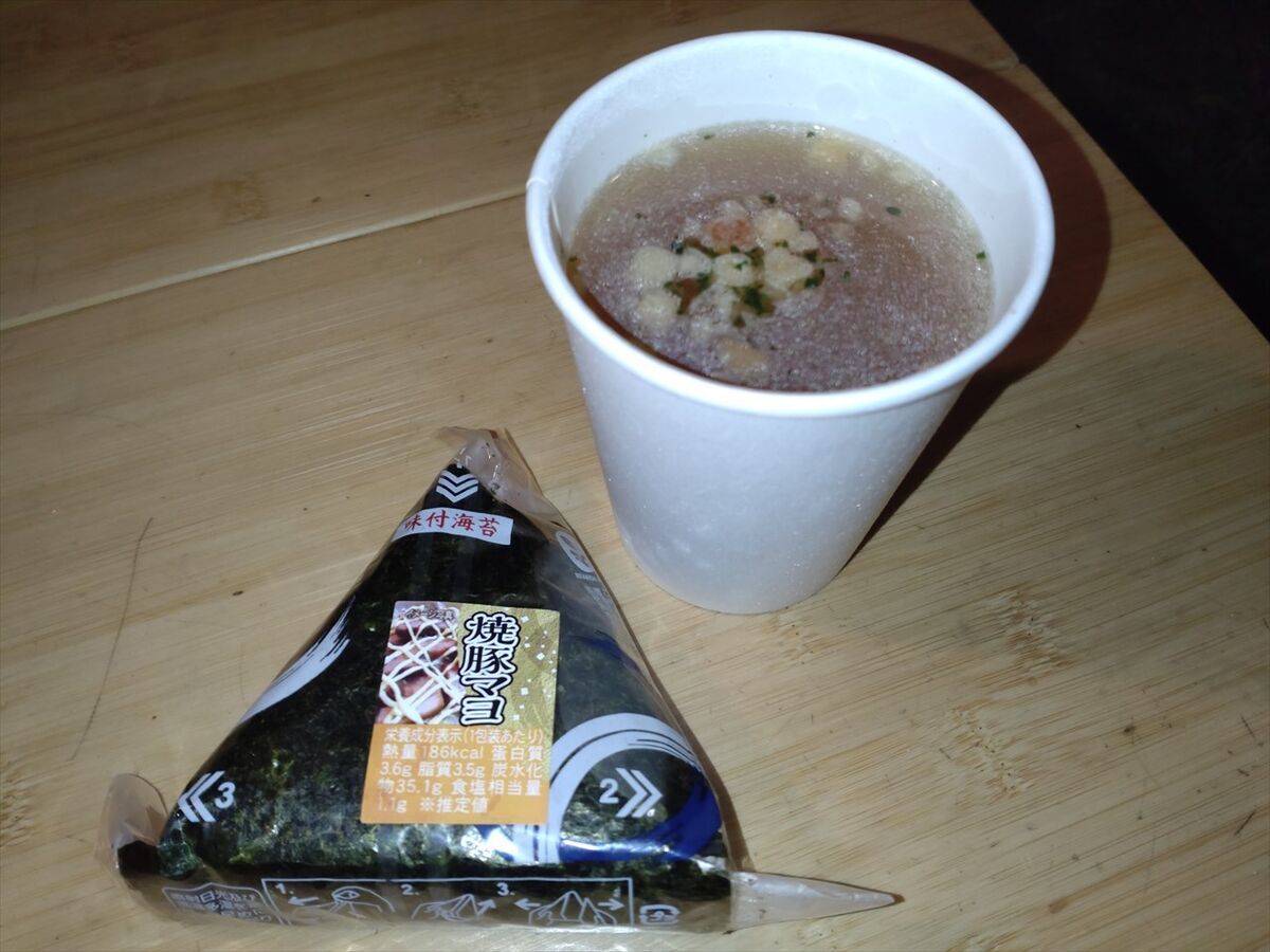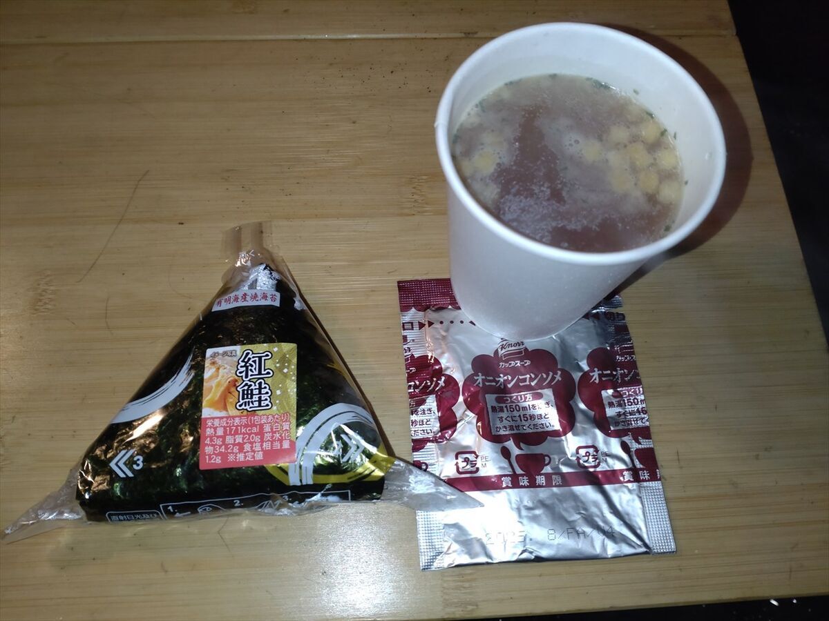 最後はおにぎりと即席スープです。