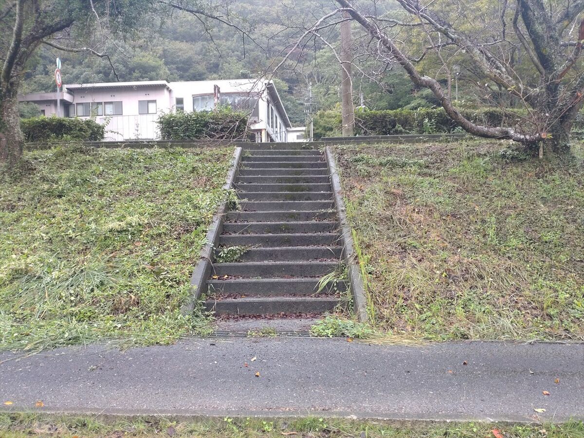 上がってくる階段があります。奥に1組の方が来られているのが見えます。