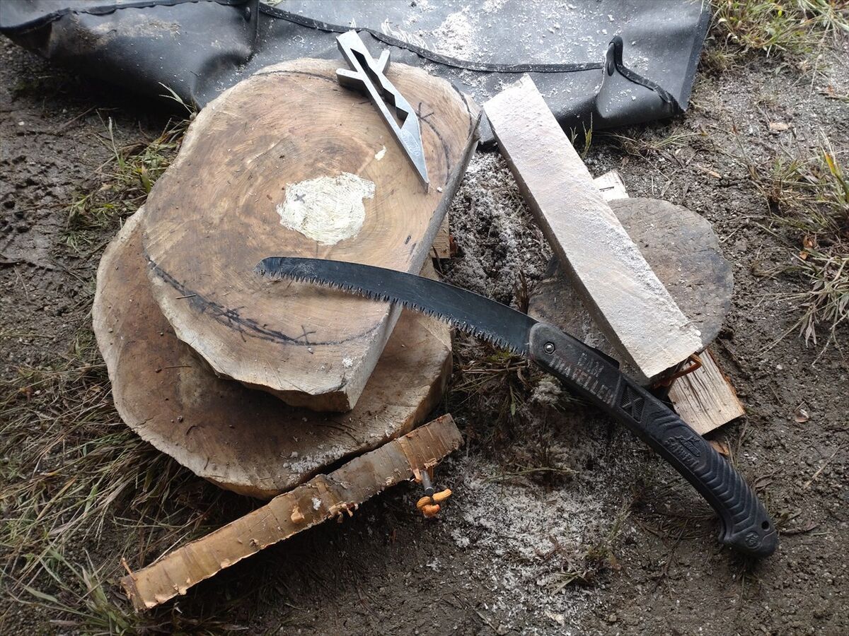 もう一枚切り出した丸太は乾燥させておいて予備として保管しておきます。