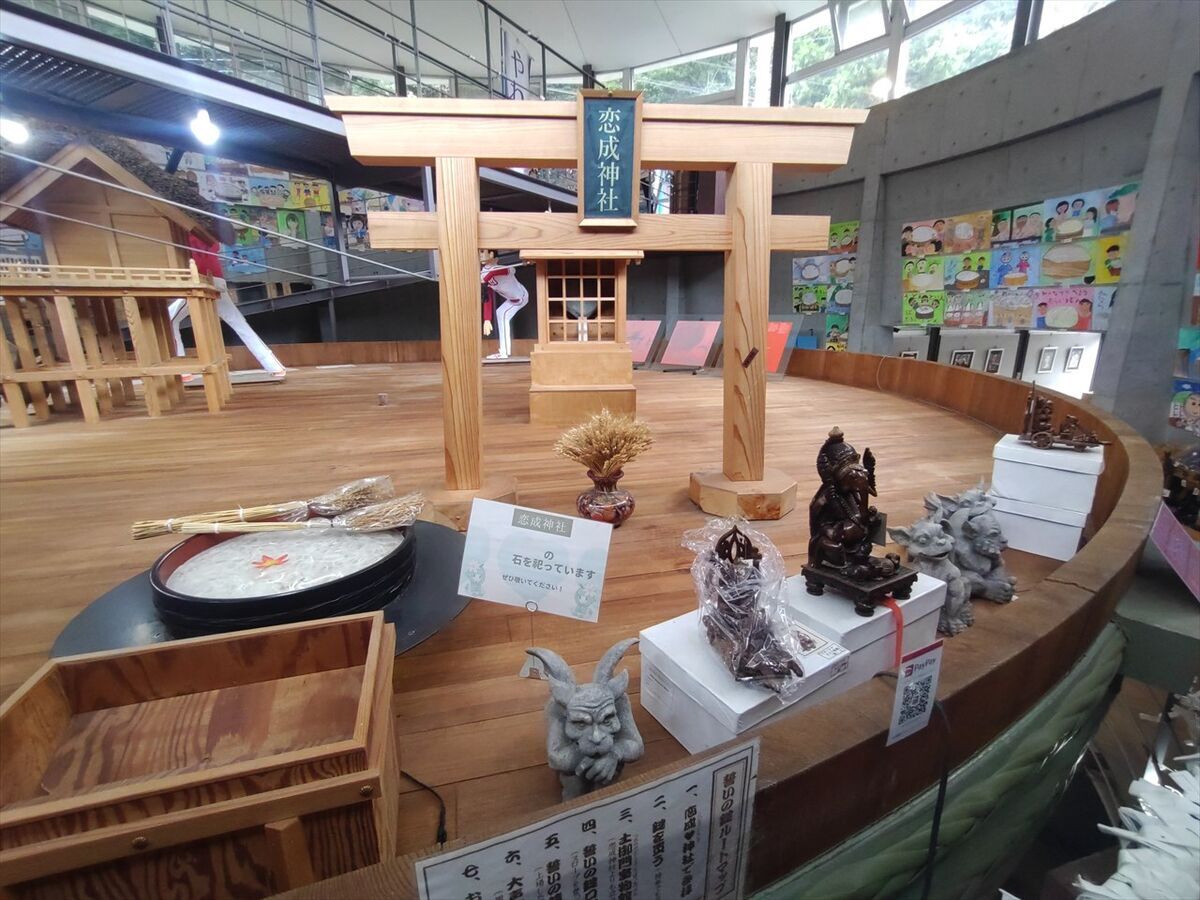 直径8.7mのたらいの中に恋成神社が作られています。