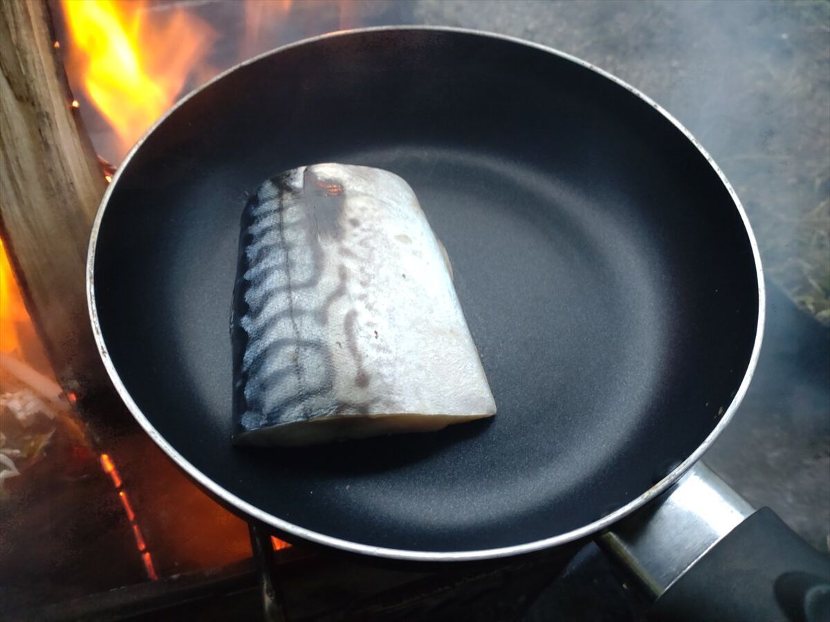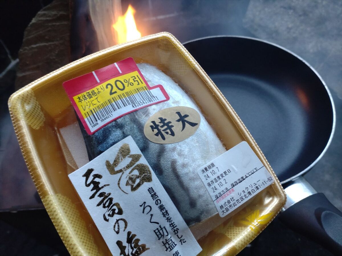 夕食の準備をしましょう。大きな塩サバを焼きます。