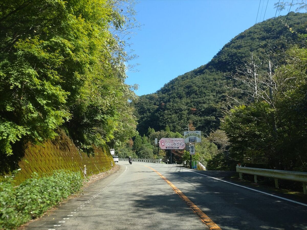 キャンプ場から狭い道を下って行きます。