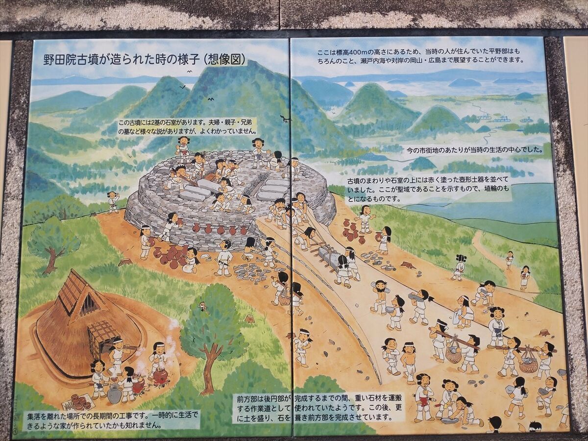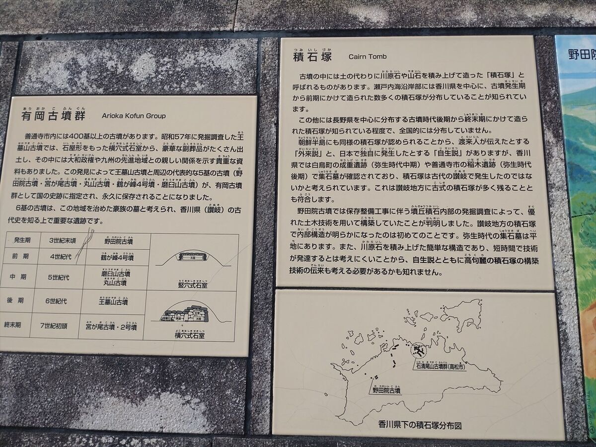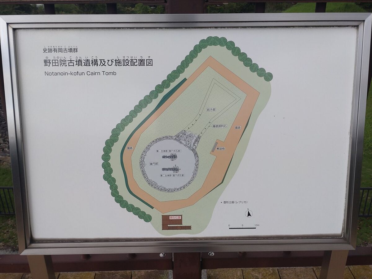 キャンプエリアの隣に壺が沢山置いてあるので何かと思ったら野田院古墳でした。