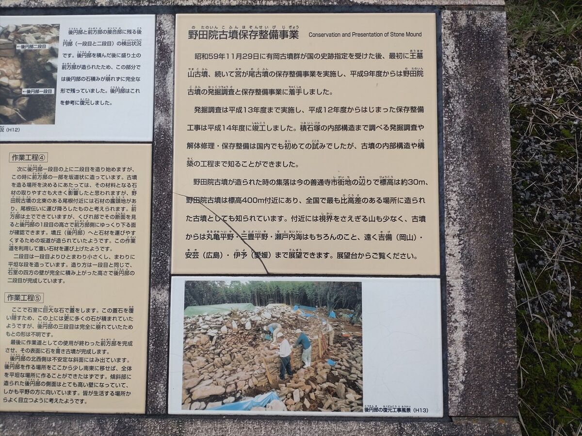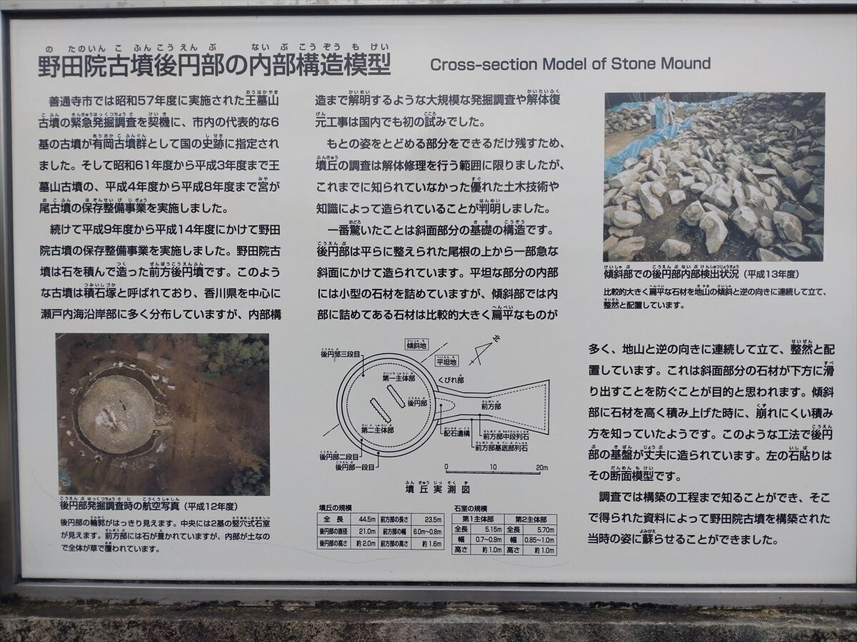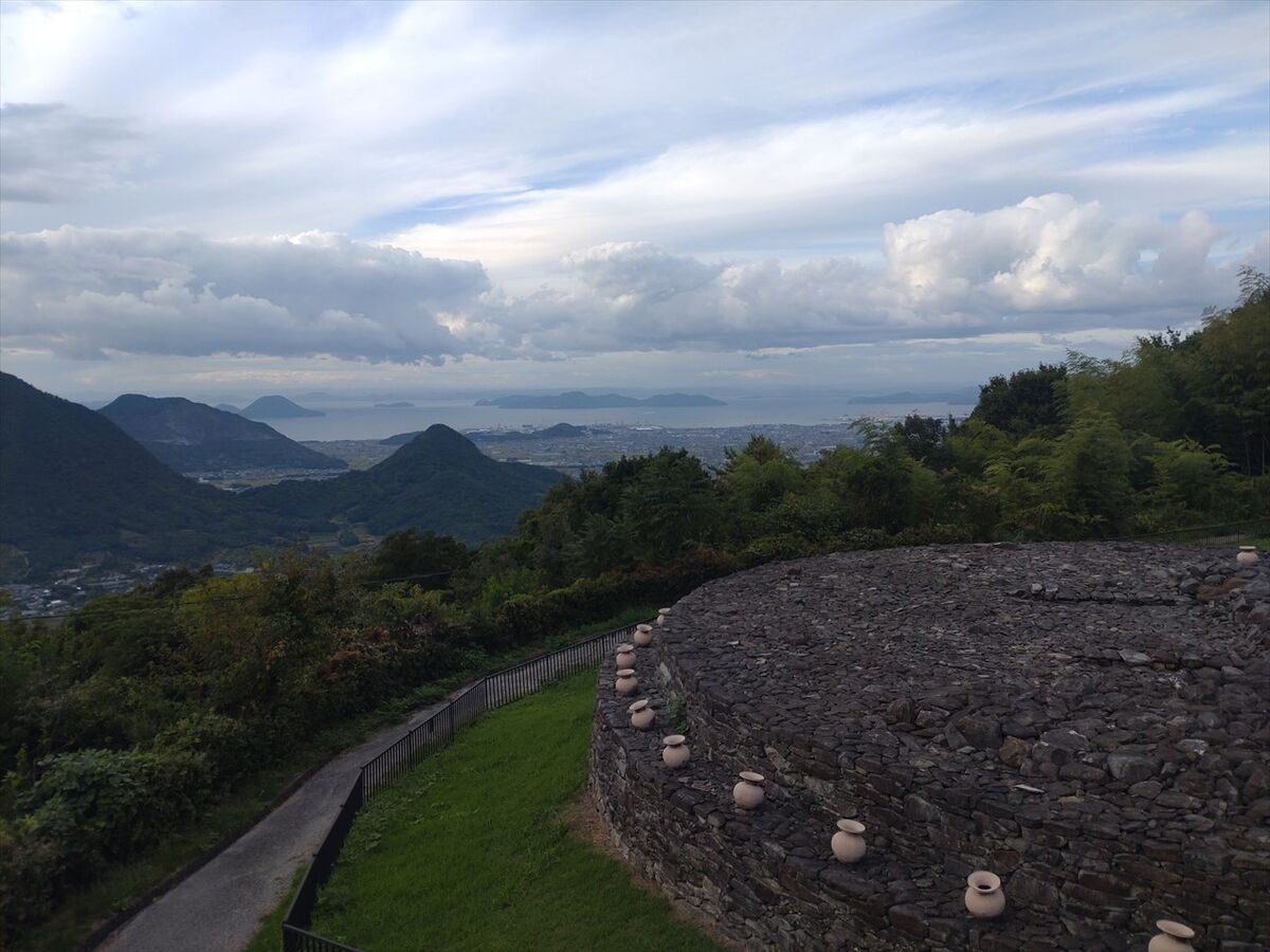 キャンプエリアの隣に壺が沢山置いてあるので何かと思ったら野田院古墳でした。