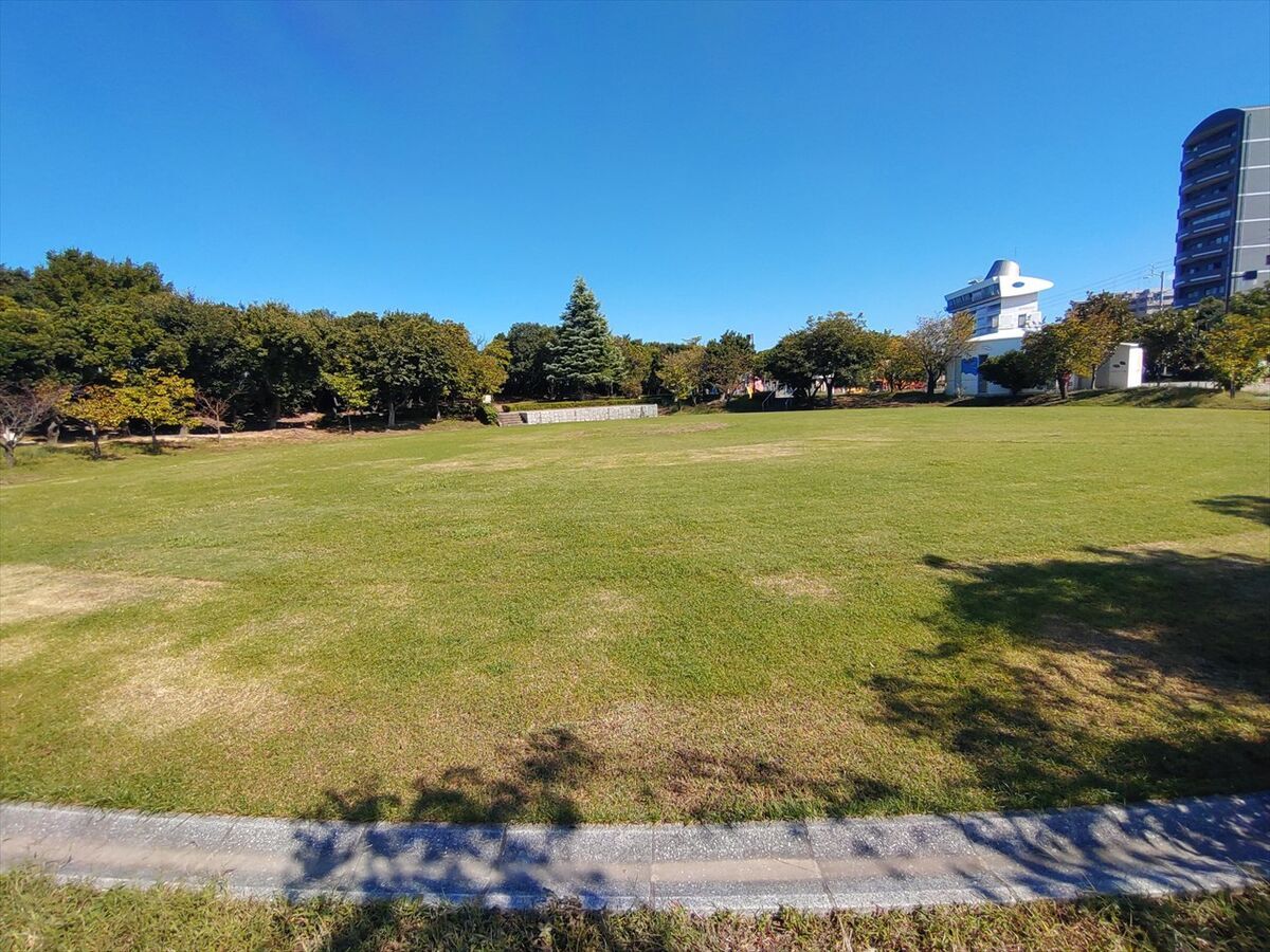 駐車場横の芝生広場です。この奥に道具広場があります。