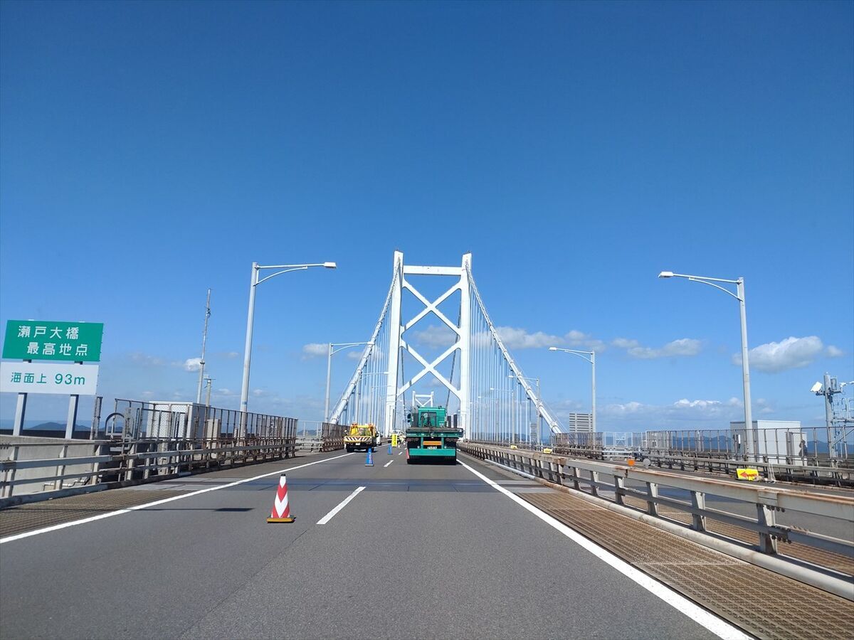 瀬戸大橋最高地点 海面上93mの標識があるのに気付きました。