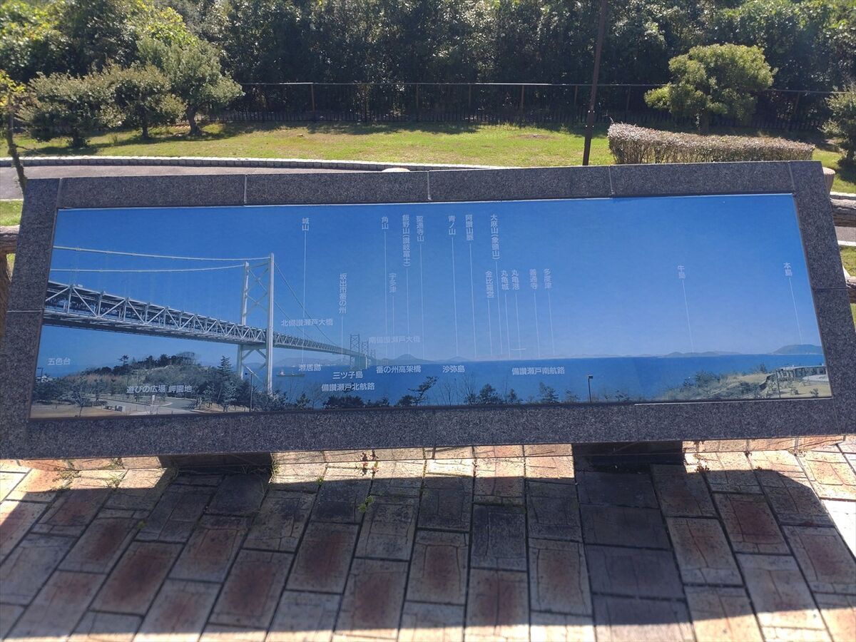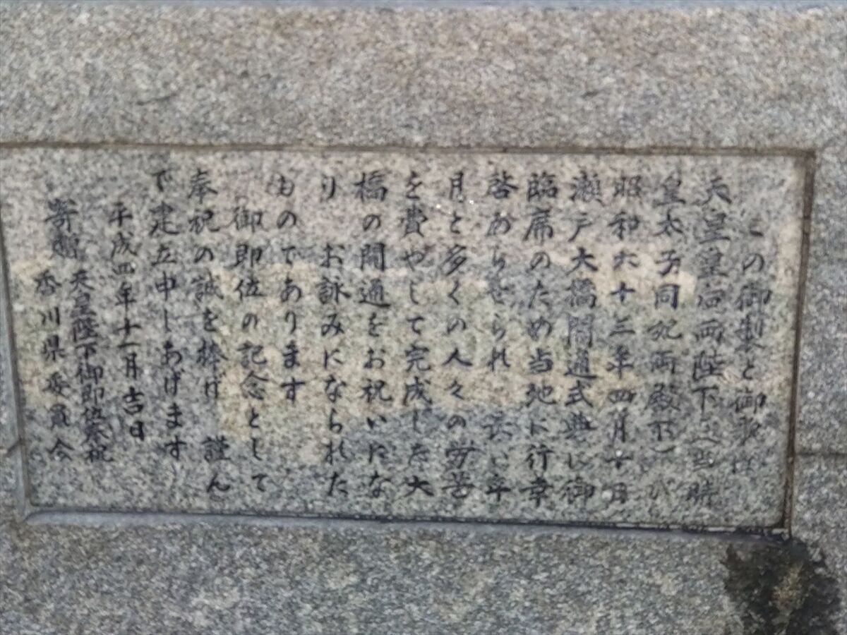 何のモニュメントかと思ったら瀬戸大橋開通の時、皇太子と皇太子妃が詠まれた「皇太子・同妃御歌・碑」だそうです。