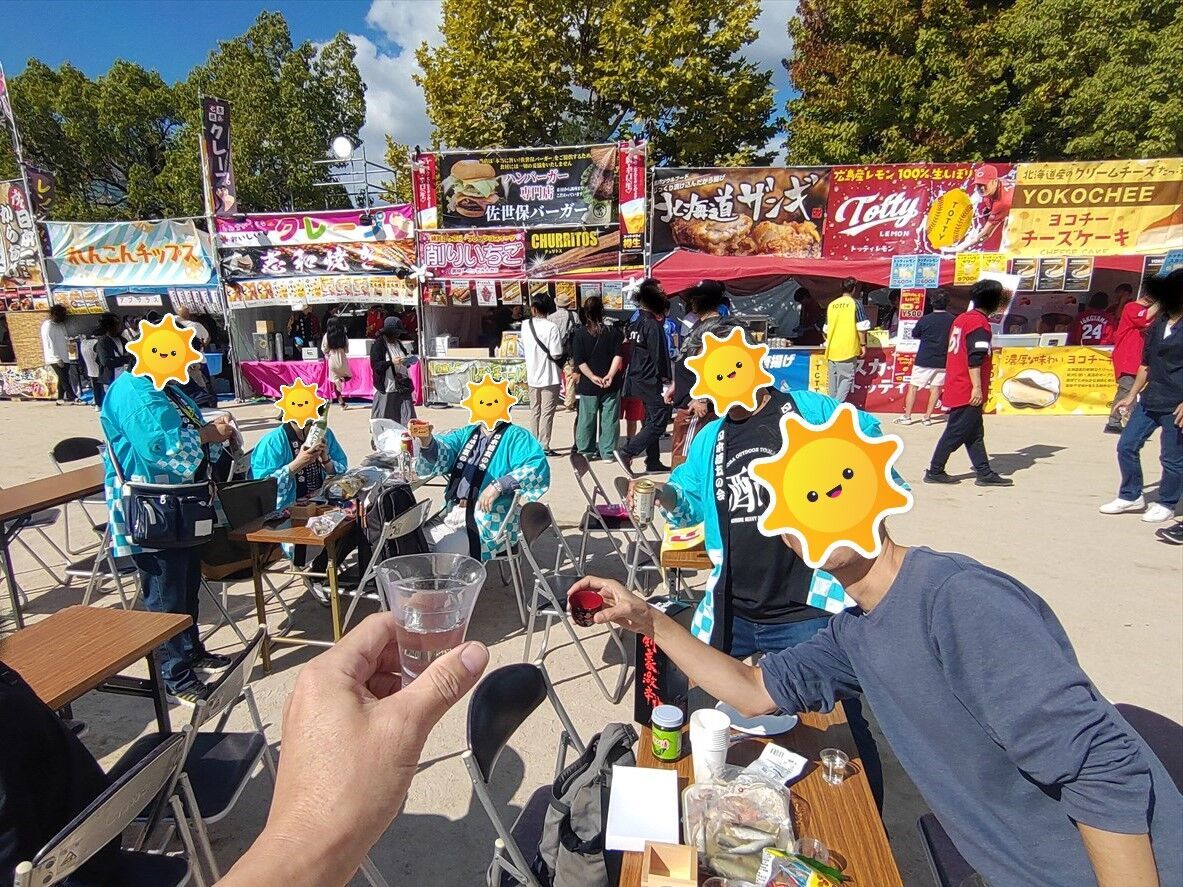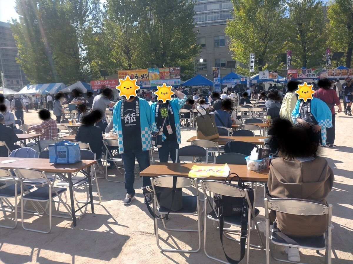 既に多くの人が来ていますね。メンバーが目立つ青い法被を着ているのですぐに場所がわかります(^^)