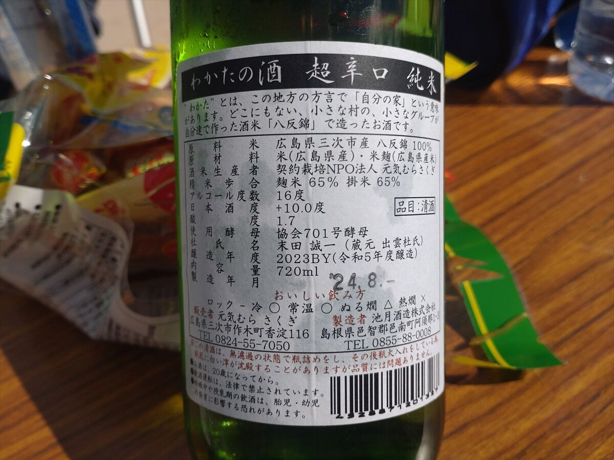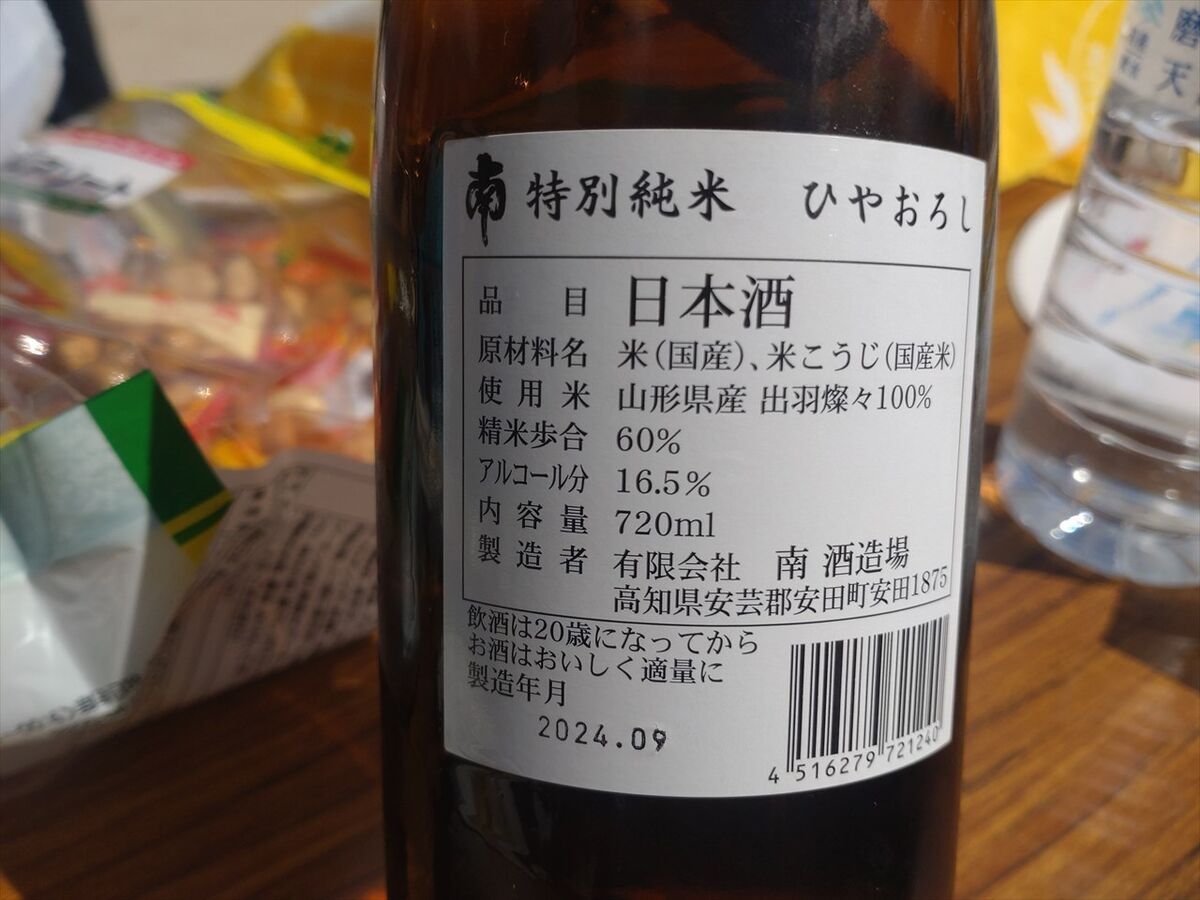 お酒はキャンプ地で利用されている四国の高知県安芸市の日本酒です。