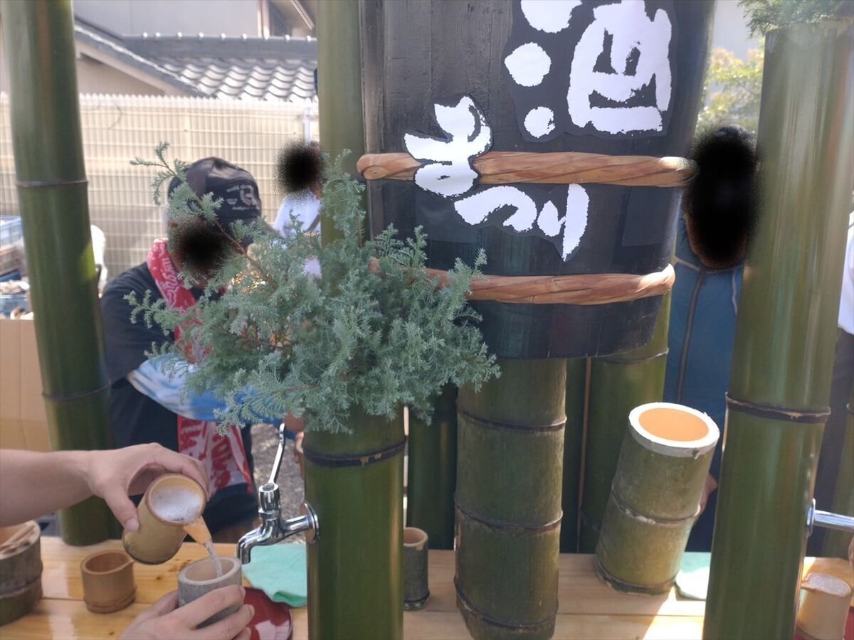 奥に竹酒が注がれる竹が高く組んでありますね。