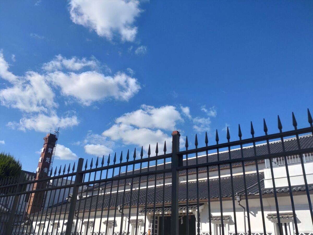 西條鶴酒造前を通ります。今日は天気が良く暑くて帽子は必須でした。