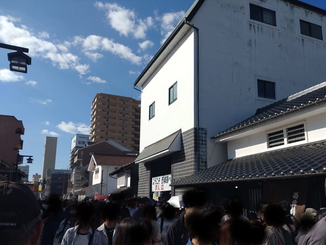 最初に金光酒造前を通ります。どこも多くの方で賑わっていますね(^^)