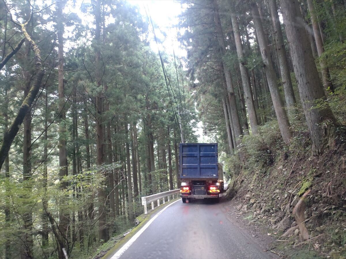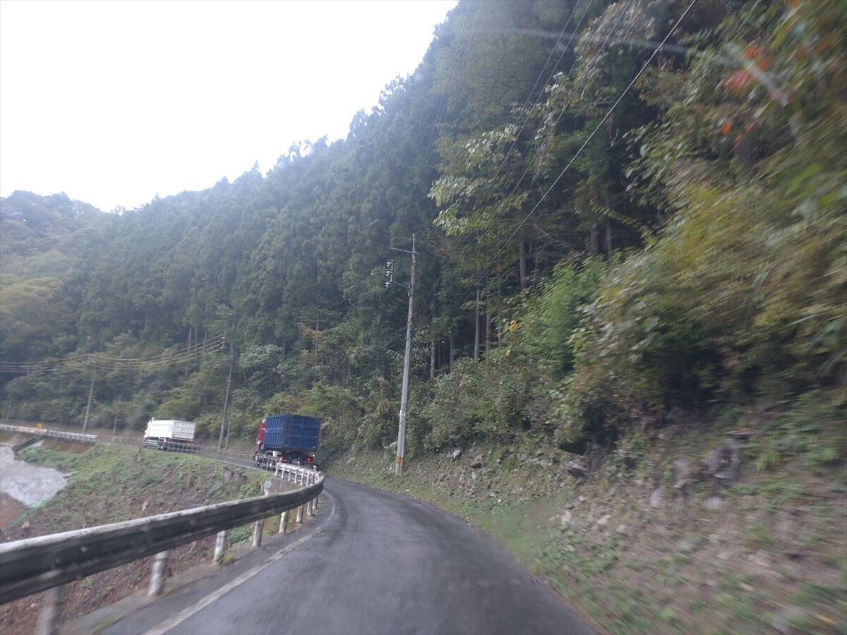 ところどころ離合のための少し広い所がありますが、大型車同士は厳しいですね(^^;