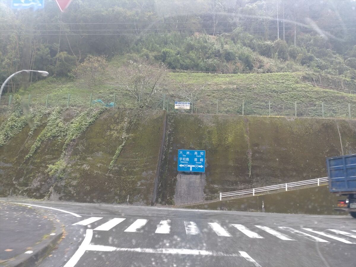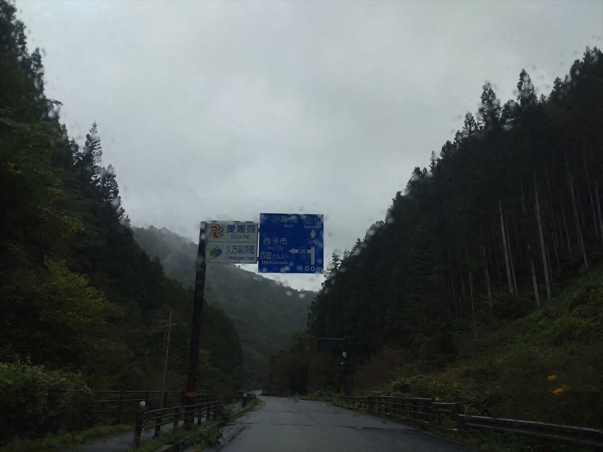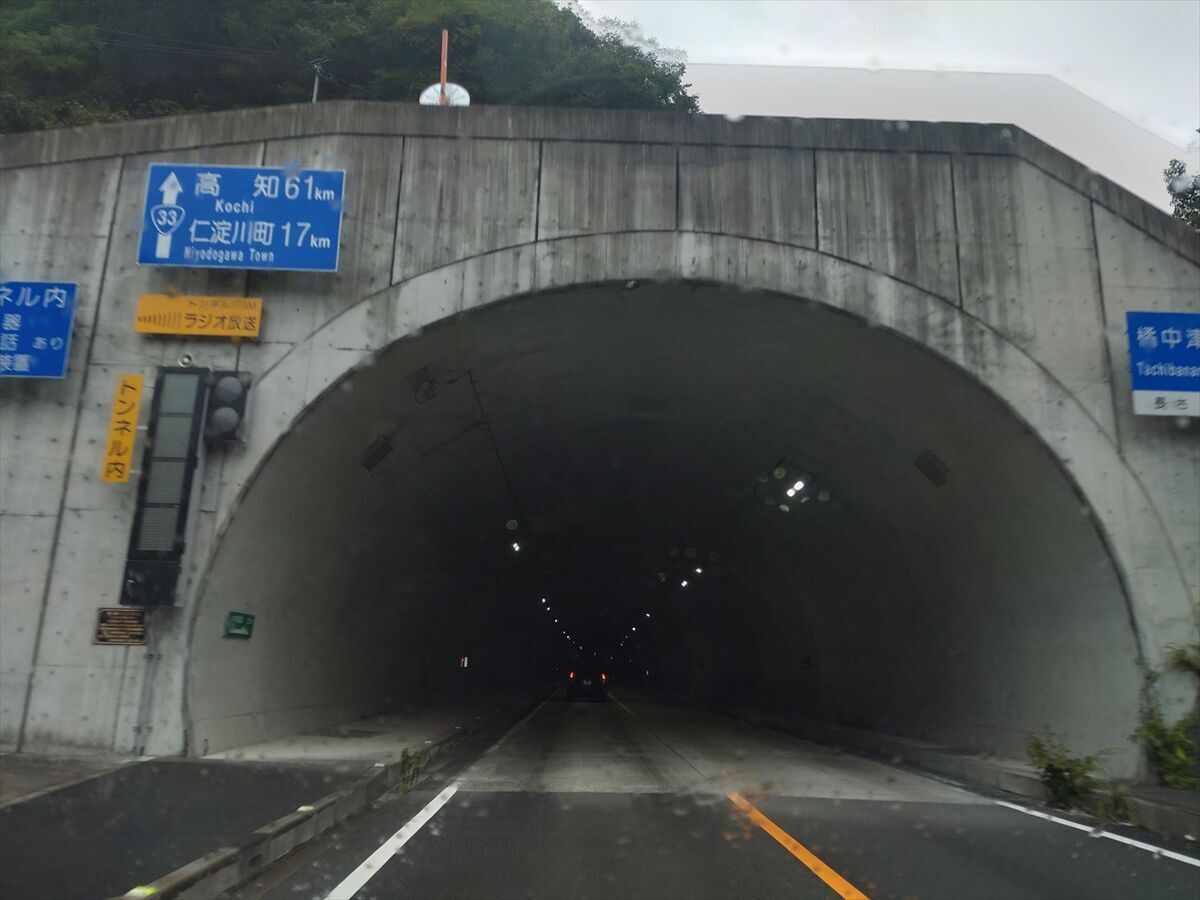 トンネル内に愛媛県との県境があります。