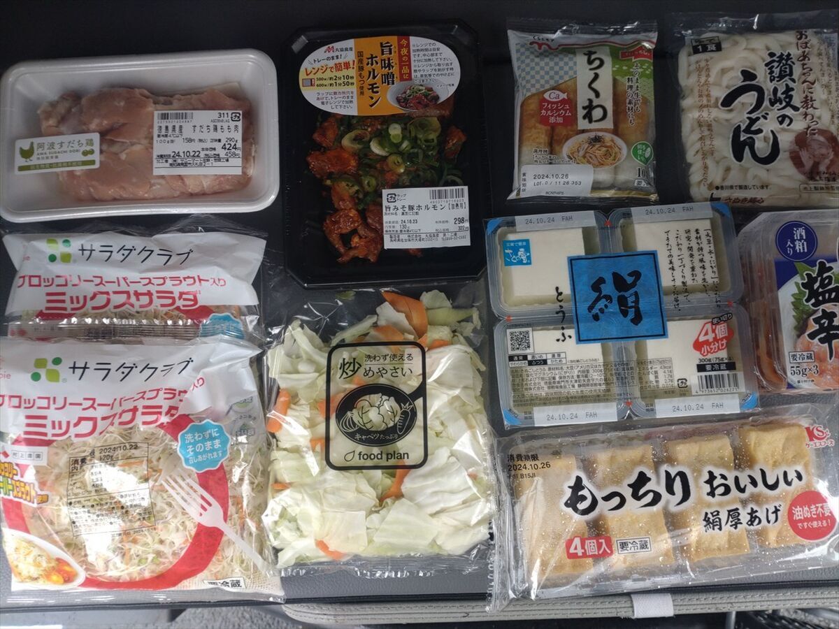 2泊分の食材を買います。鶏肉も忘れずに買ったのでこれで芋炊きが作れますね(笑)