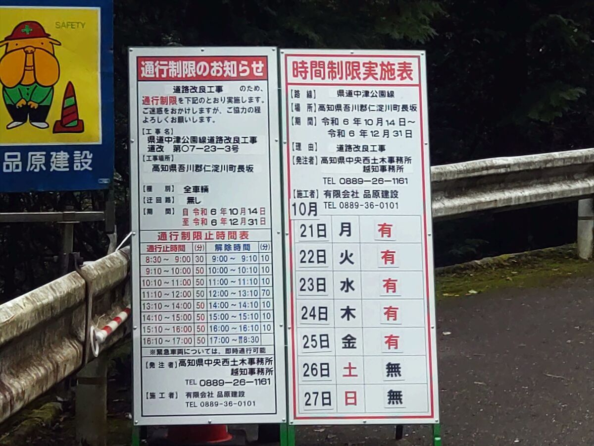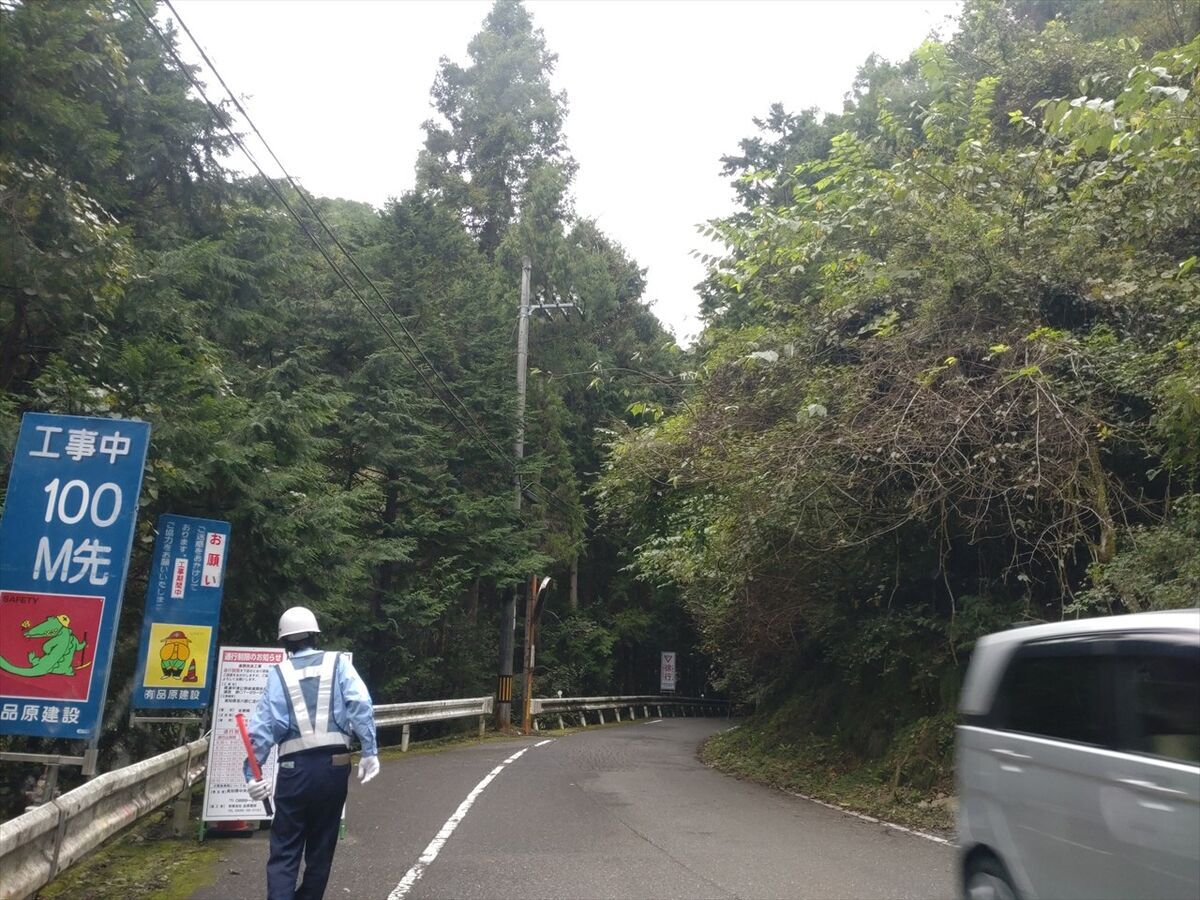50分道路工事をして10分通行可だそうです。後5分後に通行可になるタイミングだったので助かりました(笑)