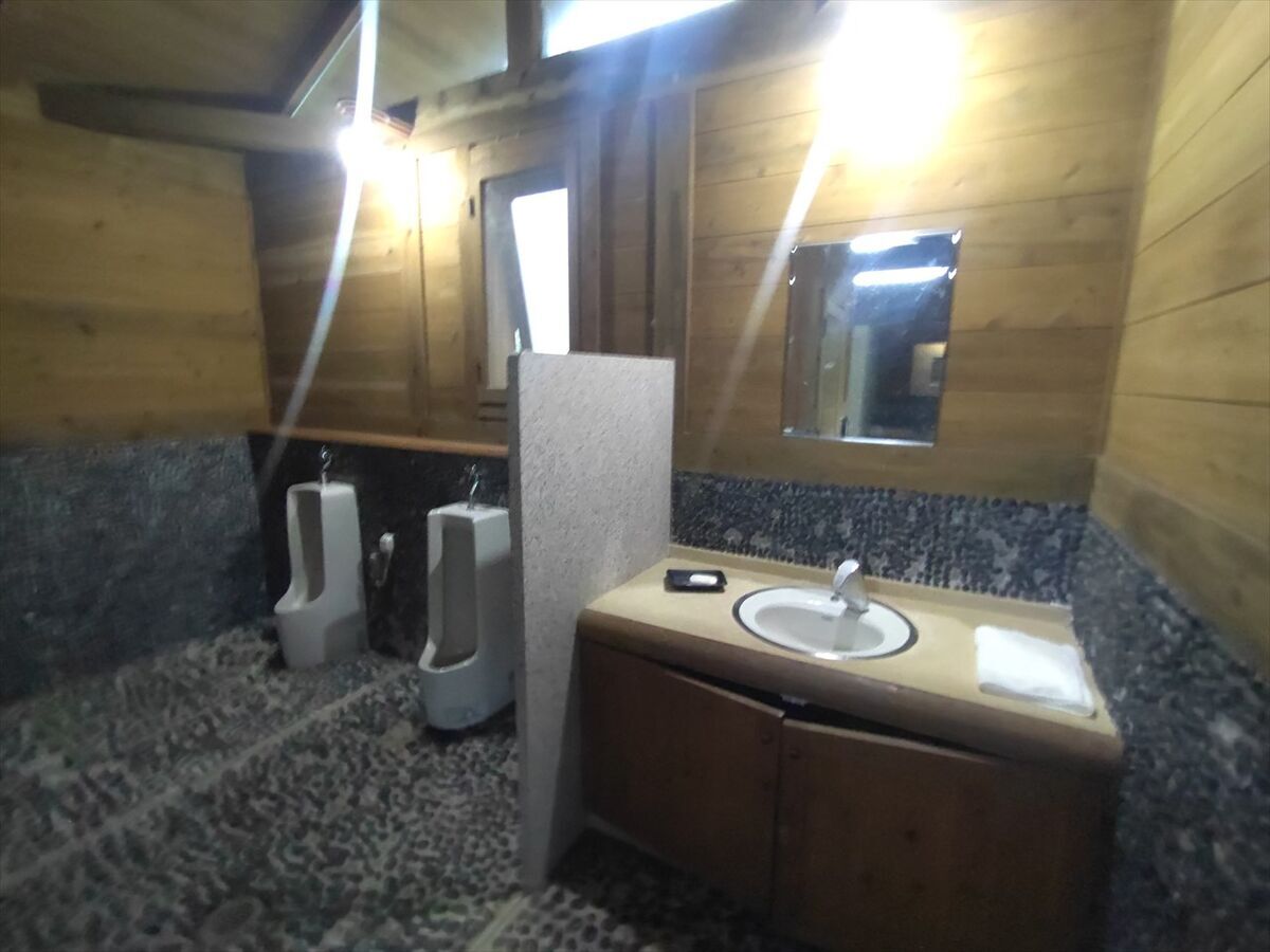街路灯などは点いておらず、もう一組の方の明かりと自分の明かりだけで周りは真っ暗です。トイレに行くにも懐中電灯が必要です。