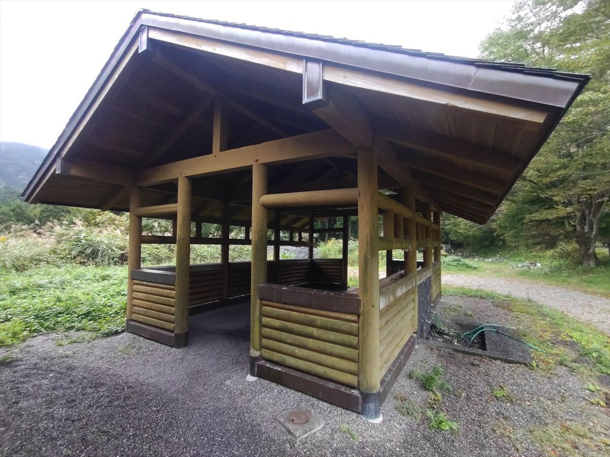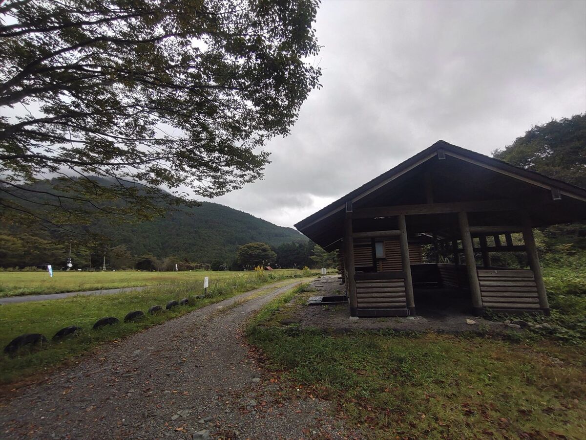 東屋があります。この辺りは車は入れませんがキャンプエリアですね。