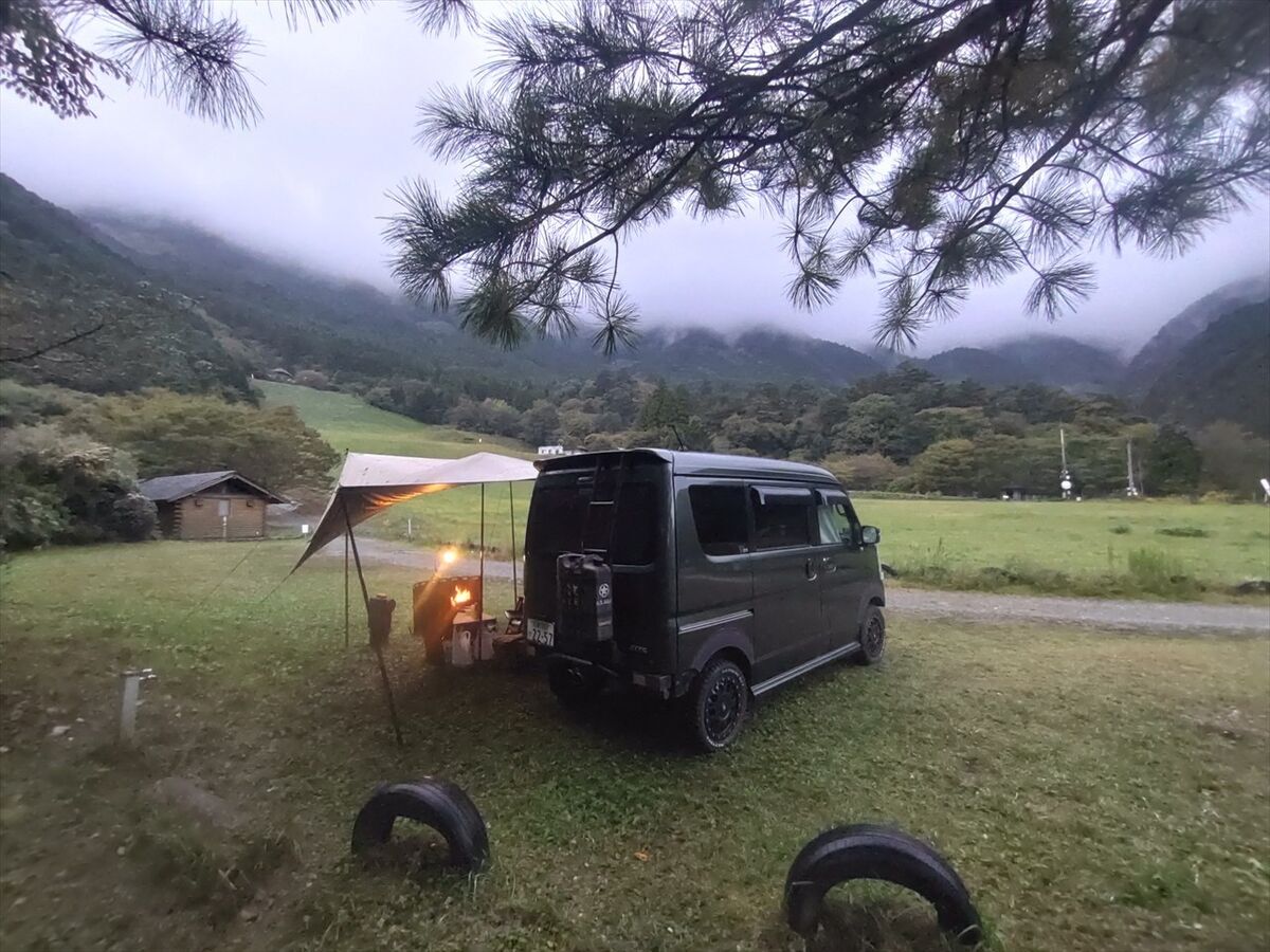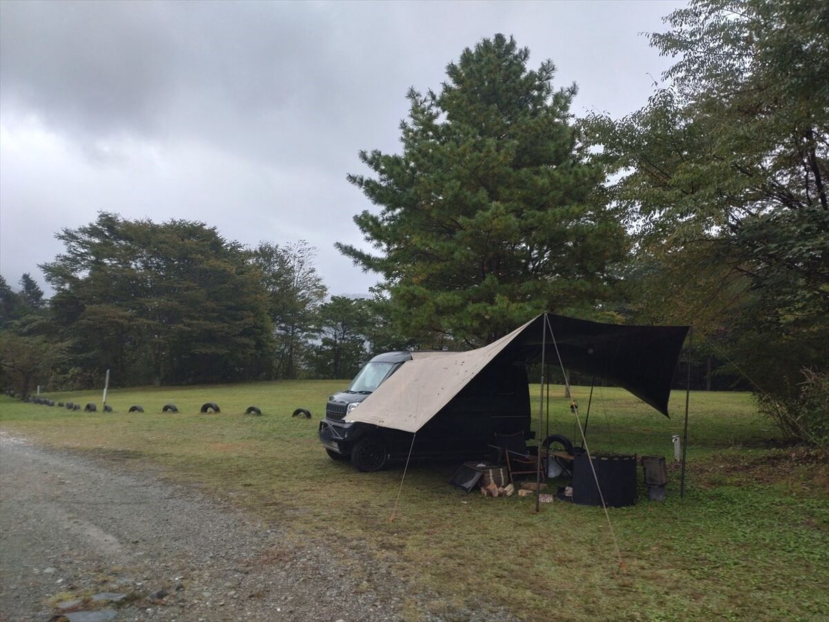 夜中も冷え込まず寝やすかったですが、車の屋根を雨が叩く音が大きくなった時は気になりました(^^;